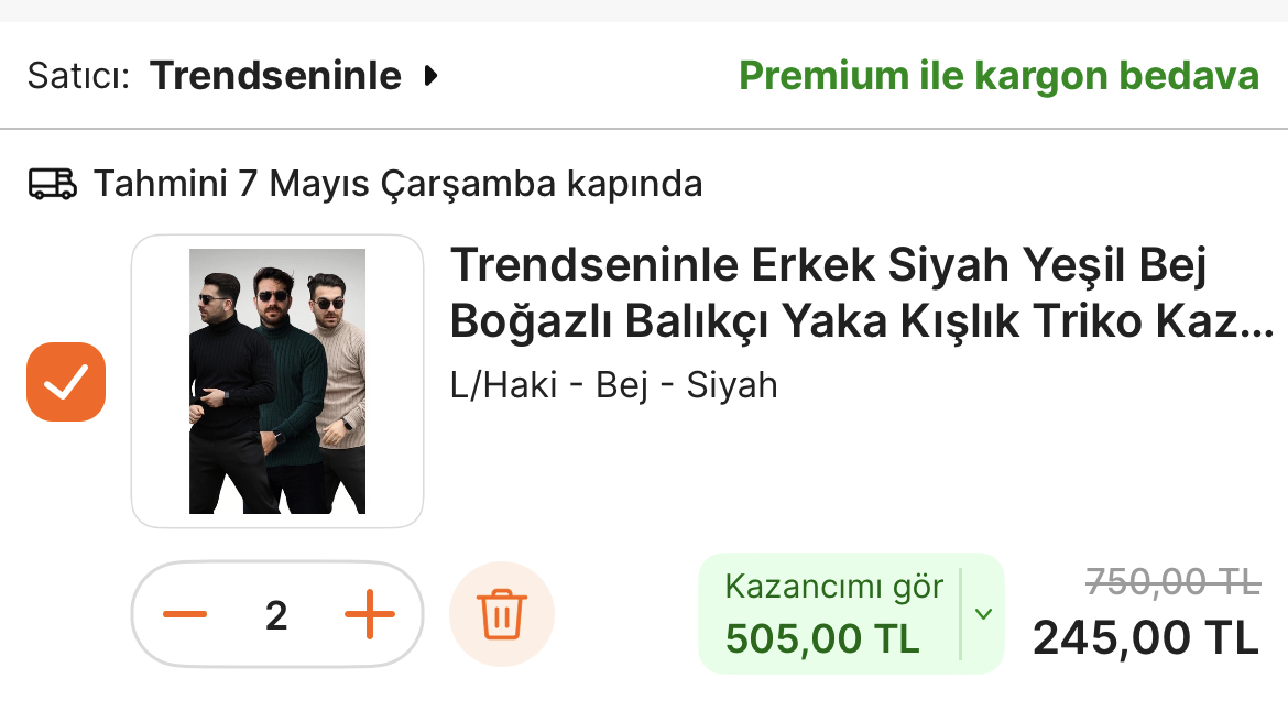 Trendseninle Erkek Siyah Yeşil Bej Boğazlı Balıkçı Yaka Kışlık Triko Kazak 3lü Set