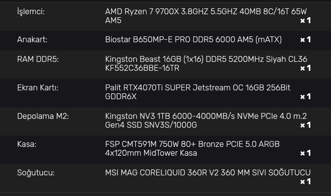Alt parçaların hiç birini seçmedim :D ekran kartı hedefim sadece.
