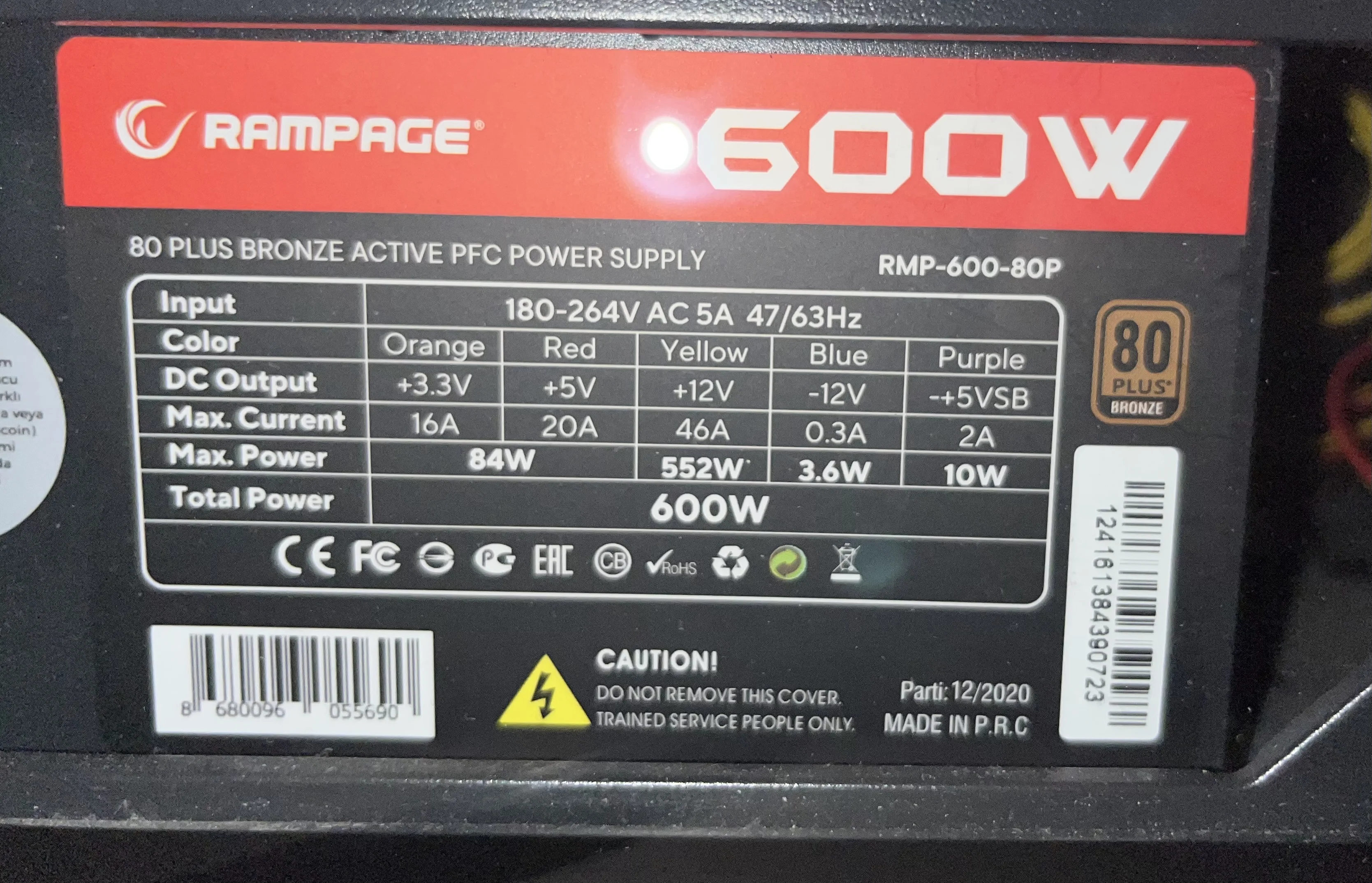 Merhaba arkadaşlar şuanki kullandığım 600w psu galiba bozuk o yüzden yenisini alacağım önerilerinizi bekliyorum. Güç kablosunu prize takınca şartel attı ve simsiyah olup ucu eridi prize gelen kısım. Başka kablo ve başka uzatma ile denedim onda da çıt çıt diye elektriklenme oldu büyük ihtimalle onu da yakar.