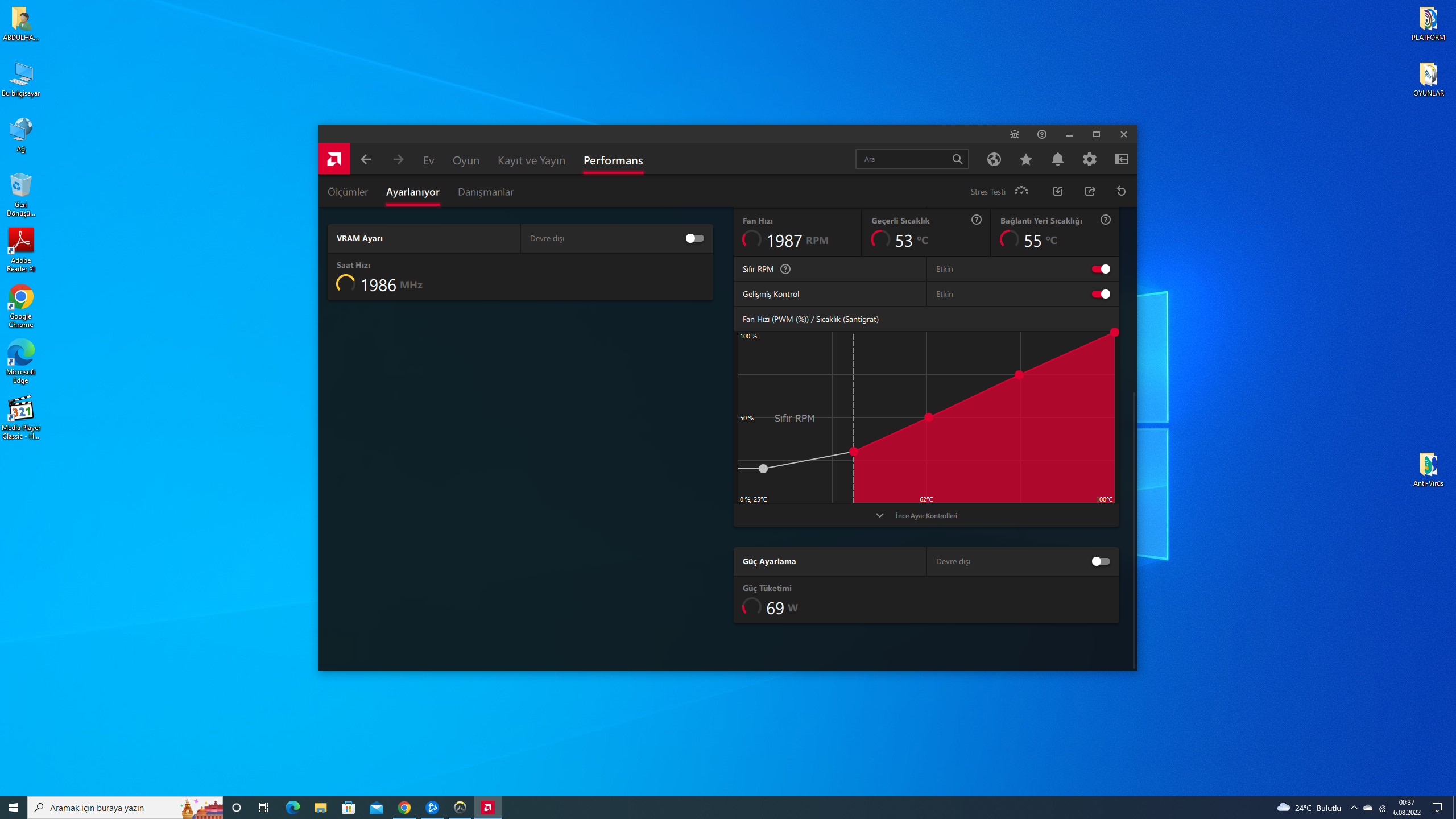 Fan hızını gösterdiğim ayarlardan kaç yapabilirim. Gösterdiğim gibi yapsam bile fan sesi rahatsız etmiyor ama ömürleriden gidiyor. 80 yada 70 mi yapsam? Şuan 85 çektim çünkü.
