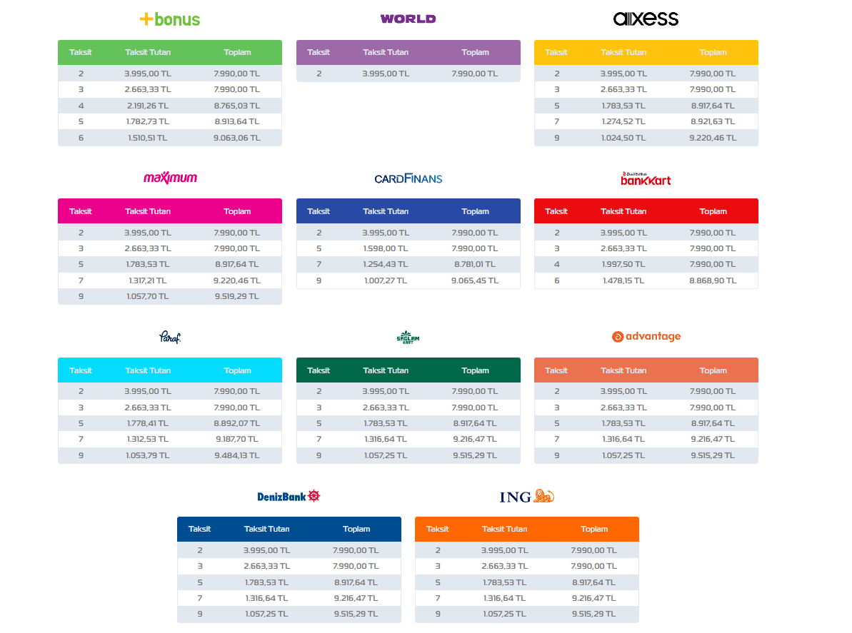 Hocam bir çok kartta peşine 3 taksit imkanı var. Hatta CardFinans'da 5 taksit imkanı mevcut.TAKSİTLİ alacağım maalesef ya bunları alamıyorum![]()