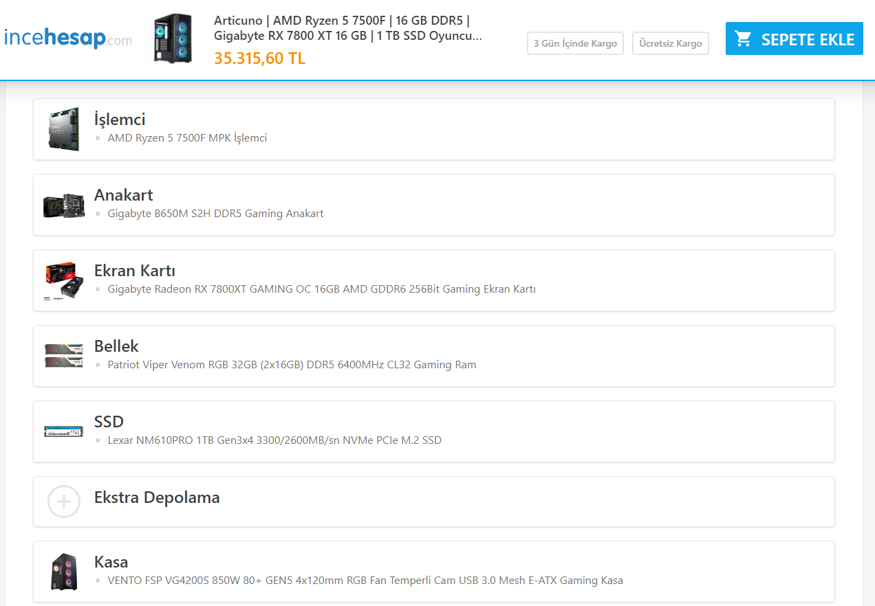 Not: İndirimli ürüne veya Sıcak Fırsatlara atmadım, öyleymiş gibi yorum yapacaklar geri butonuna basabilir. Gene de parçalar güzel, fiyat okey.