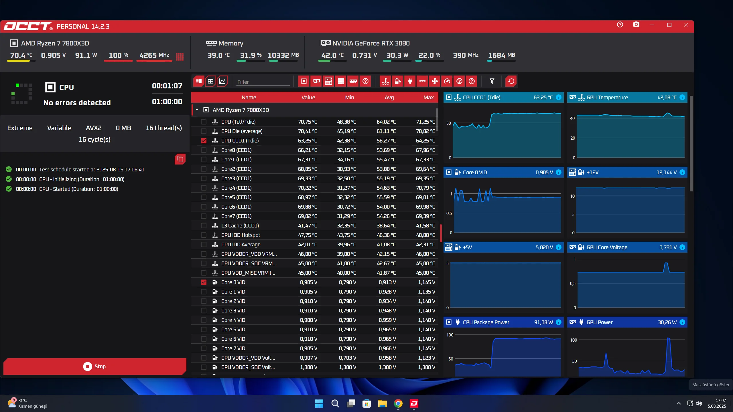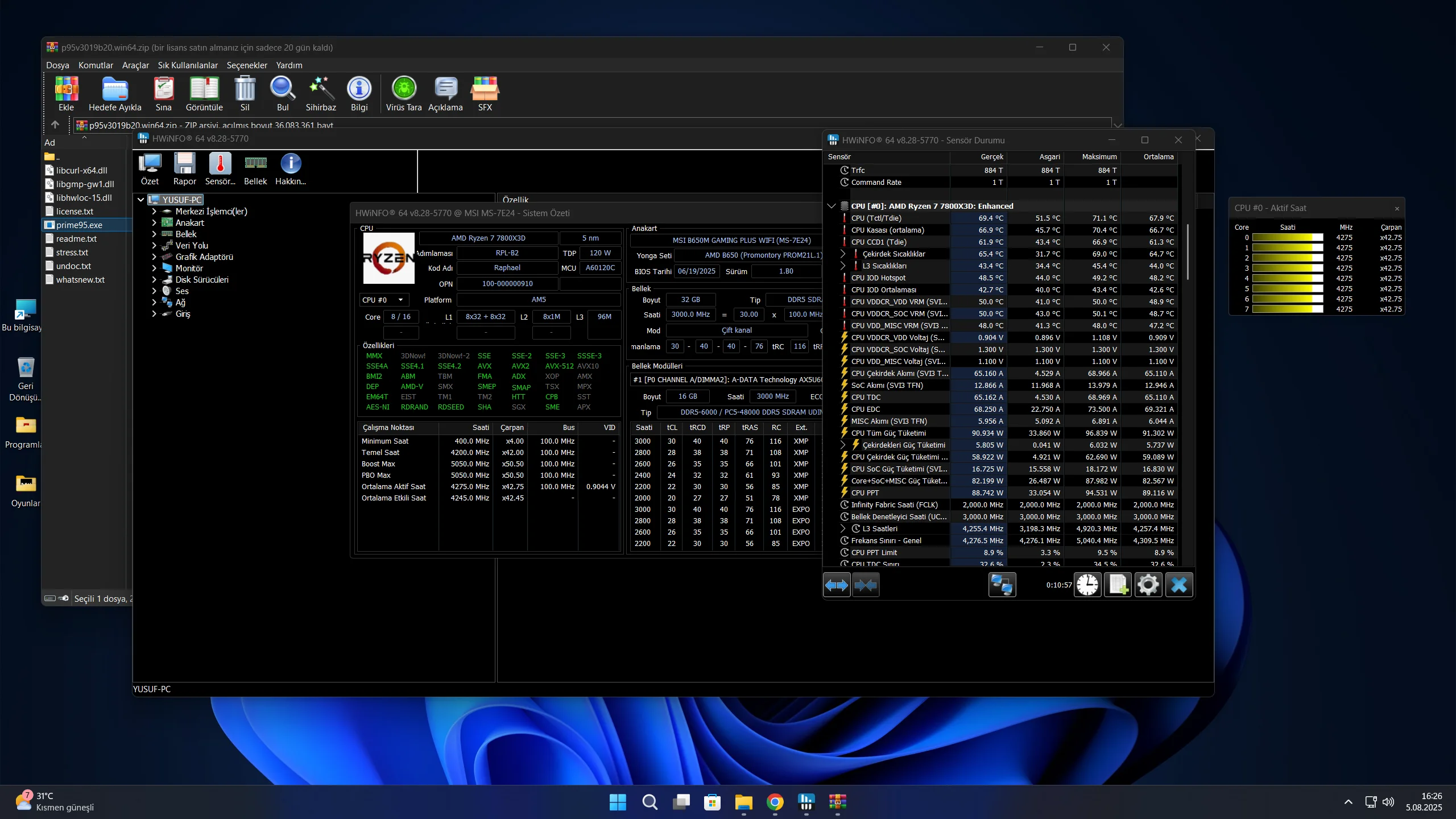 İmzadaki sistemi kullanıyorum. 7800x3d işlemci ile Arctic Liquid Freezer III 360 A-RGB White bu sıvı soğutmayı kullanıyorum. Prime95 testinde işlemci en fazla 70 derece görüyor ancak frekans çok düşük 4300mhz civarı. Oyun oynarken özellikle last of part 2 oyununda ara geçişlerde shaderlar yüklenirken işlemci 85 dereceye kadar gidiyor. Ancak oyun başladığında 65-70 derece civarı seyrediyor. Stress testinde yüksek frekanslara ulaşamıyor bu durum soğutmaylamı alakalıdır? Pompa default olarak 2850 RPM'de sabit çalışıyor gözüküyor. Elimi borulara değdirdiğimde yada radyatörün üstüne getirdiğimde sıcak hava hissedemiyorum. Pompada arıza olma ihtimali nedir?