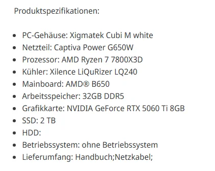 Arkadaşlar selam, ben anlık Berlin'de yaşıyorum ve yakın zamanda Laptopumu satıp PC almak istiyorum. Bir pc çekti dikkatimi aşağıya linkini bırakacağım. sorularımdan ilki 7800x3d ve 5070 bileşenlerini millet 2k oyun için kullanıyor ama ben rekabetçi oyunlar oynuyorum, genellikle cs oynuyorum ve 380hz 1080p monitör alacağım, bir sorun olur mu? İkinci olarak pc 1600 euro ve muhtemelen 18 ay taksitle alacağım sizce değer mi? ve son olarak yayın da yapacağım boş zamanlarımda bu konuda sorun olur mu? Başka tavsiyelerini olursa duymak isterim ve şimdiden cevaplarınız için çok teşekkür ederim.