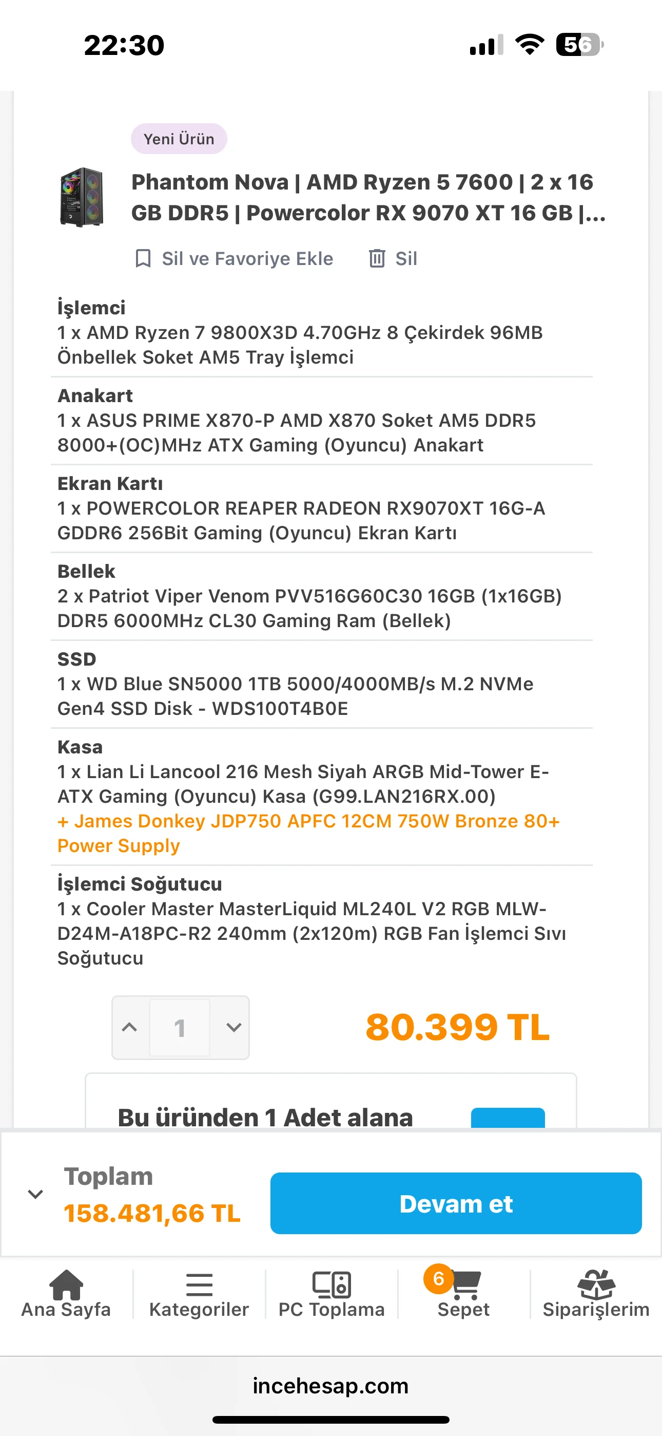 Şu anda fiyat avantajlı RTX 5080 sistem yok.