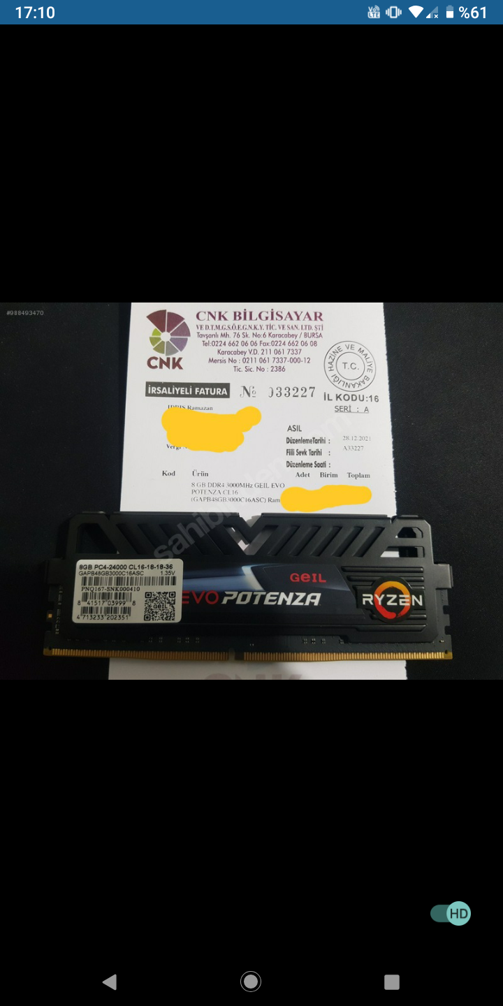 Merhaba sahibindende dolaşırken böyle bi ilana denk geldim markası gevil evo ilk kez gördüm güvenilir mi nasıl marka bilen varsa yazarsa sevinirim 8gb ddr4 3000mhz kutulu garantiliymiş üstündede ryzen yazıyo benim işlemcimde ryzen 3 3100 sıkıntı çıkarmı alsam fiyata 318 yazmıs param güvende ile 349 tl 350 tl ye falan geliyo nasıl sizce