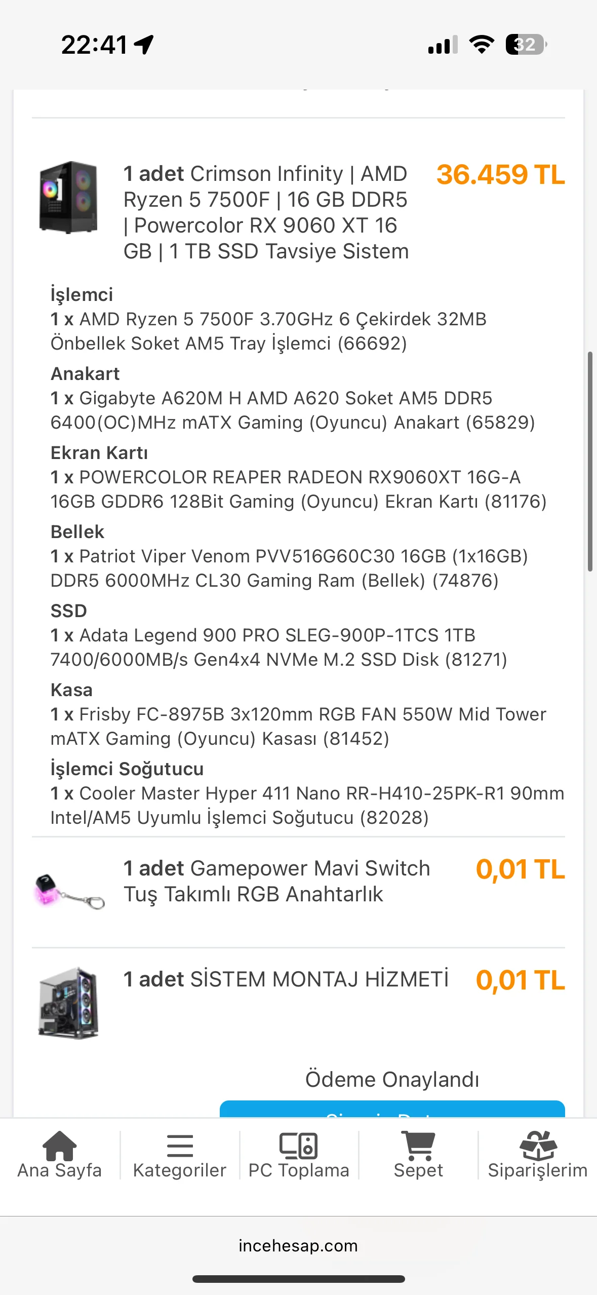 GAMİNG GECESİ 9060XT 16 GB EKRAN KARTLI SİSTEM
