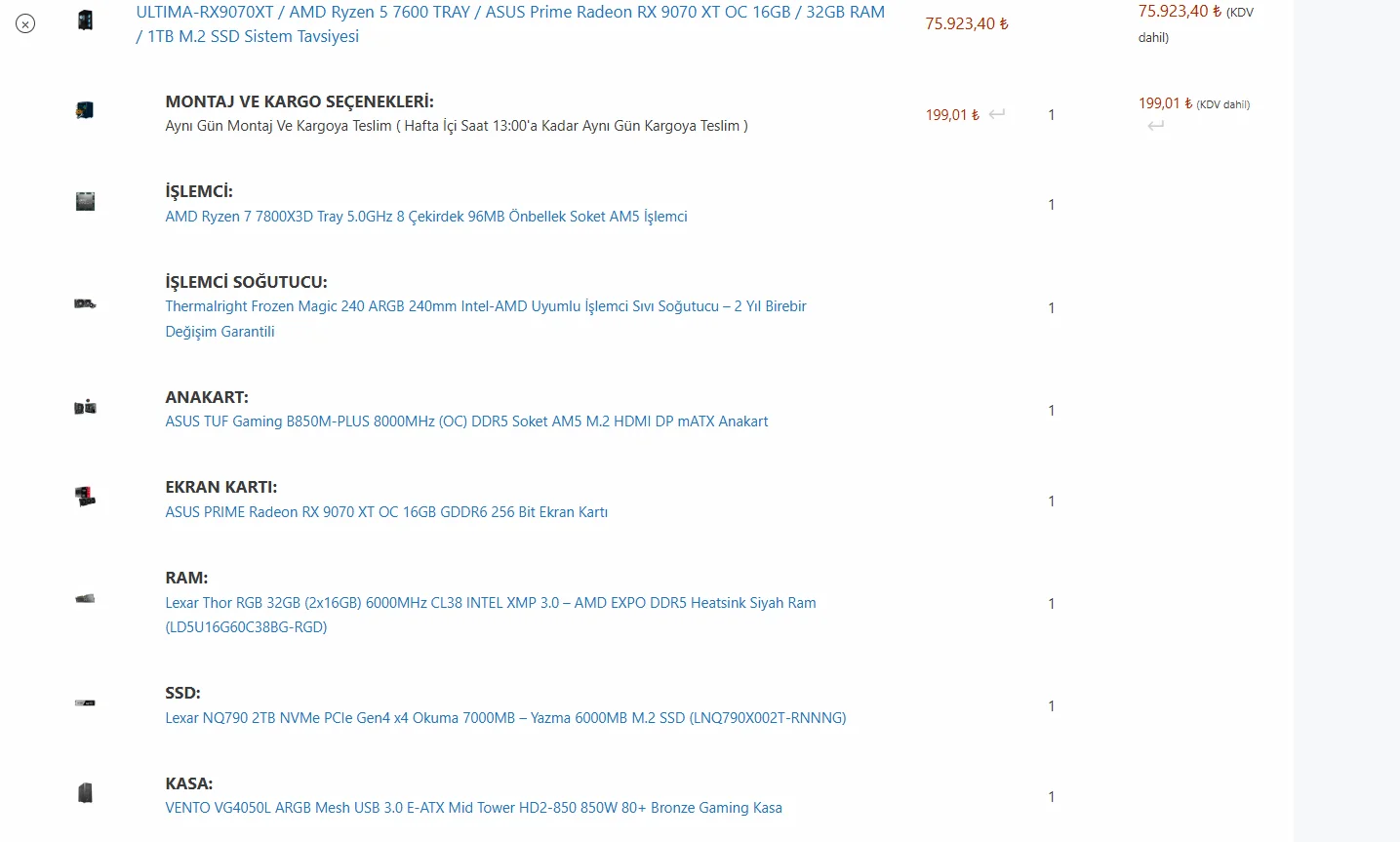 ULTIMA-RX9070XT sistem tavsiyesi AMD Ryzen 5 7600 ve ASUS RX 9070 XT OC 16GB ile üst seviye oyun deneyimi için tasarlandı.