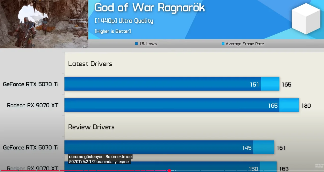 Son gelen yazılım güncellemesi ile oyundan oyuna değişen performans değişiklikleriyle genel olarak artış yaşandı. Bu da detaylı 5070Ti ile karşılaştırması: