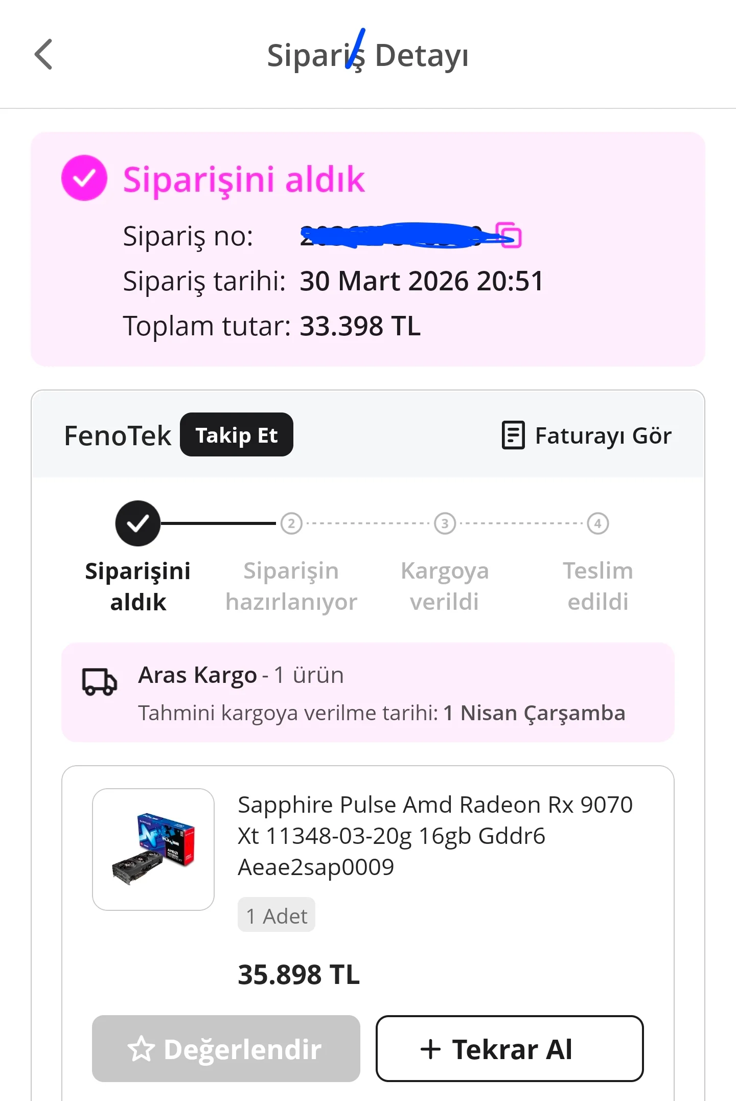 Valla hocam 5070e değilde kaliteli 9070xt ye gecsen iyi olur. Mağazanın ismini ilk defa duydum en azından amazondan vs alda sorun cıkarsa iade edersin. Sorun çıkmazsada kullanırsınMerhabalar ozellikle dün atılan 9070xt başlıkları görmüş bulunmaktayim. Bugun sipariş ettigim modeli iade edip 5070 e geçmeli miyim kuponla ve 9 taksit ile beraber 33.398 tl ye geldi 9070xt pulse modeli
