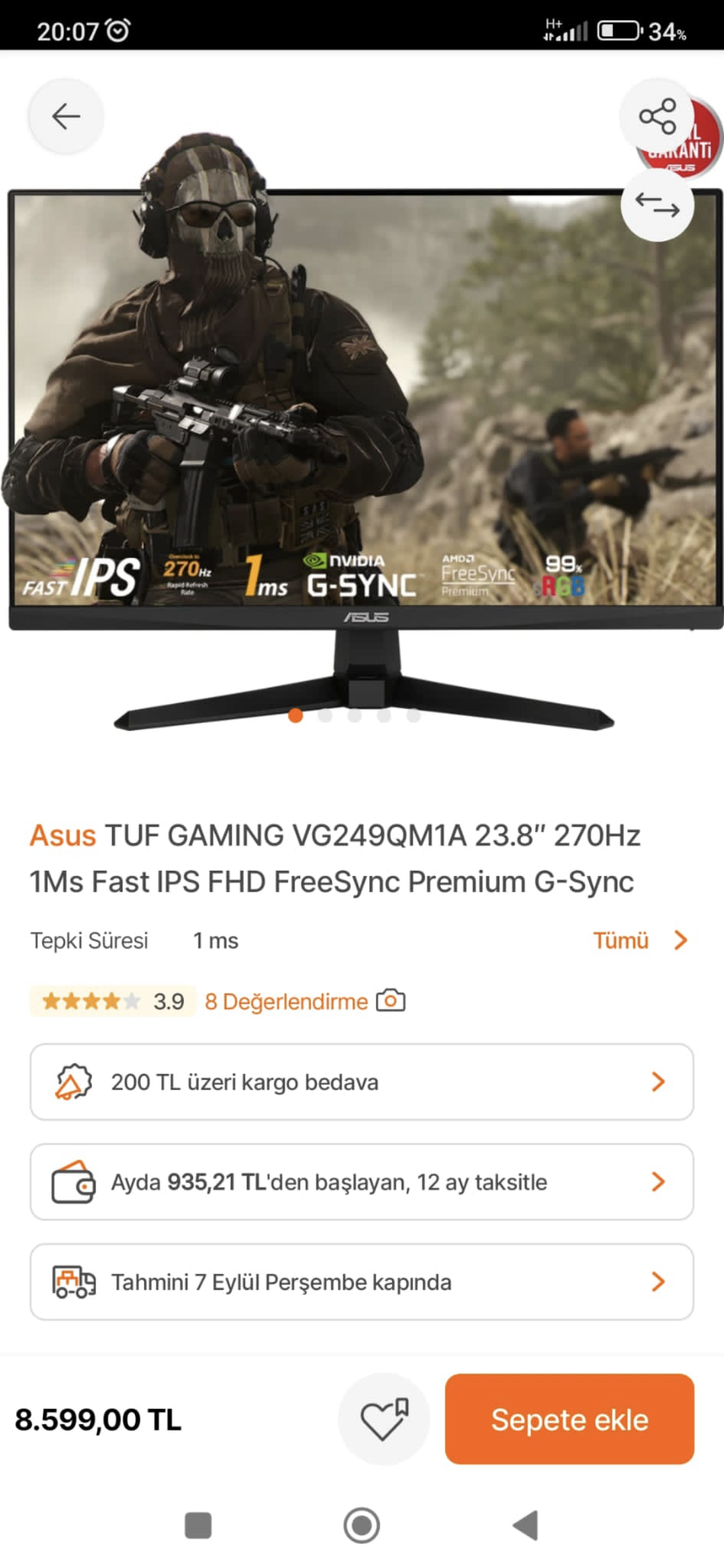 2k 240 hz 27 inç fiyatı bilmem ama ürün güzel duruyorAlıntıyı görüntülearkadaşlar ekteki ekranı beğendim sizce uygundmudur