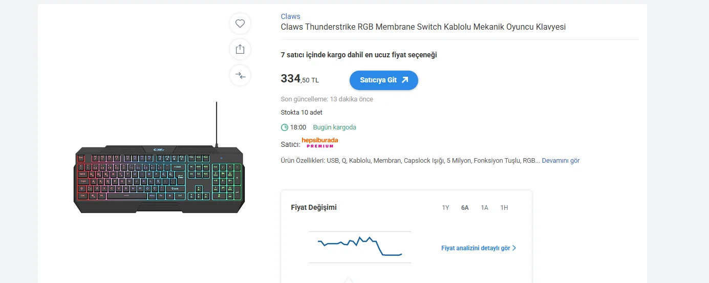 2019tl olduğuna emin misin ?Çok çok haklısınız. Logitech G103'ü 10 yıl kullandım, hala ilk günkü gibi çalışıyor. Geçenlerde Havit'in beyaz bir klavyesini aldım 450 TL'ye, beyaz olduğu için çok kir tutuyordu iade ettim. Claws Thunderstrike aldım 2019 TL'ye, taş gibi klavye bunu da minimum 3 yıl kullanırım.