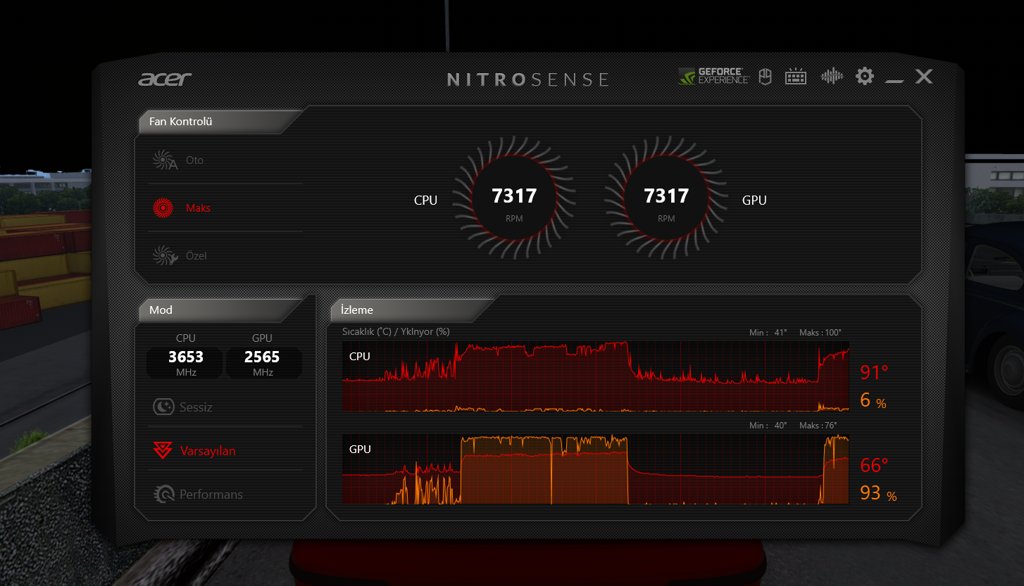 Hocam birde nitrosensten ayarları yaptıktan sonra nitrosensi kapayıp başka bir uygulamadan oyundayken sıcaklık değerlerini kontrol edebilir misiniz?teşekkürler hocam