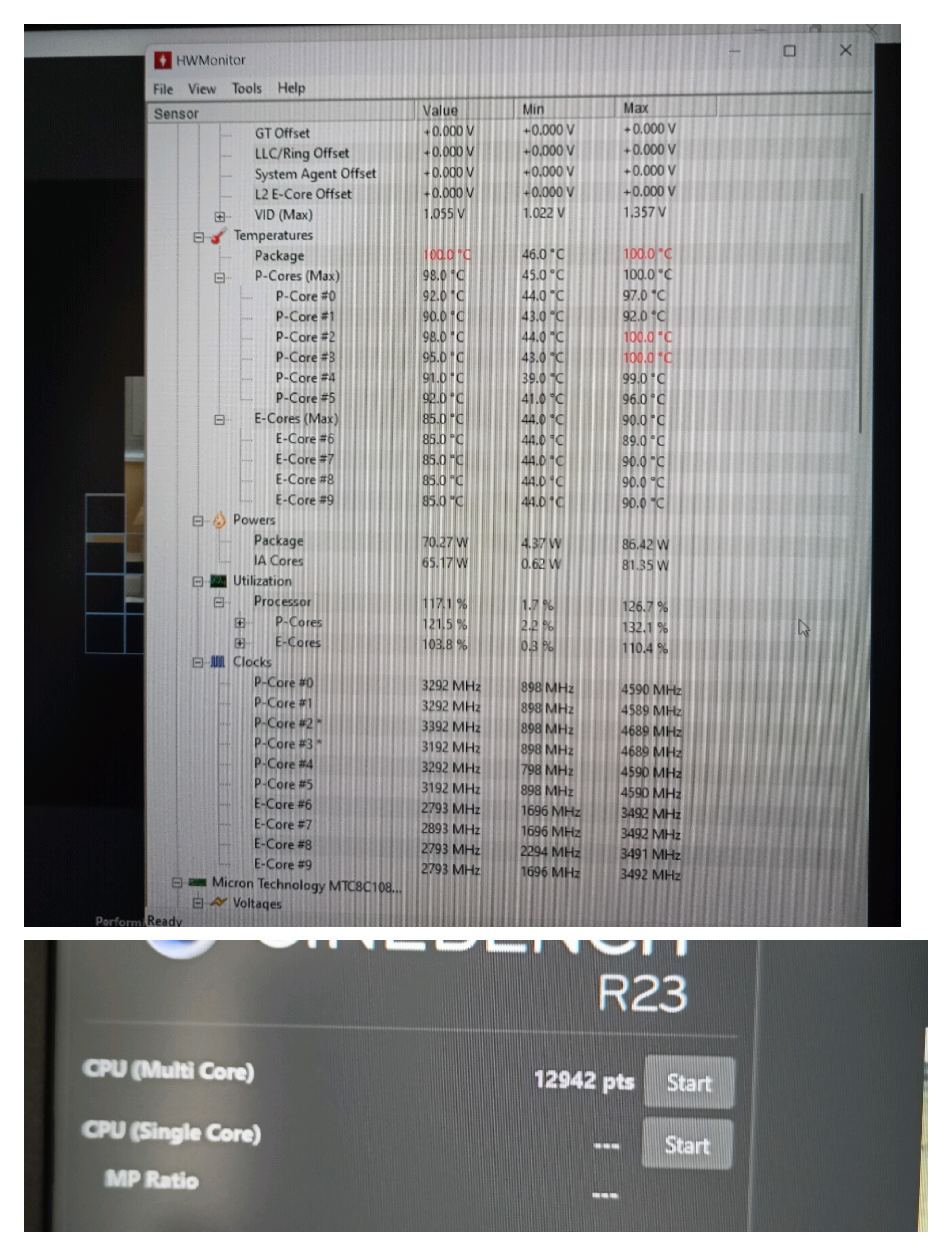 Turbo boost açık, nitrosense üzerinden performans modunu açtım, fanları Max düzeye aldım, sıcaklık olarak 100 dereceyi gördü çekirdekler, hız olarak 3.3 GHz seviyesinde çalıştı çoğunlukla,
