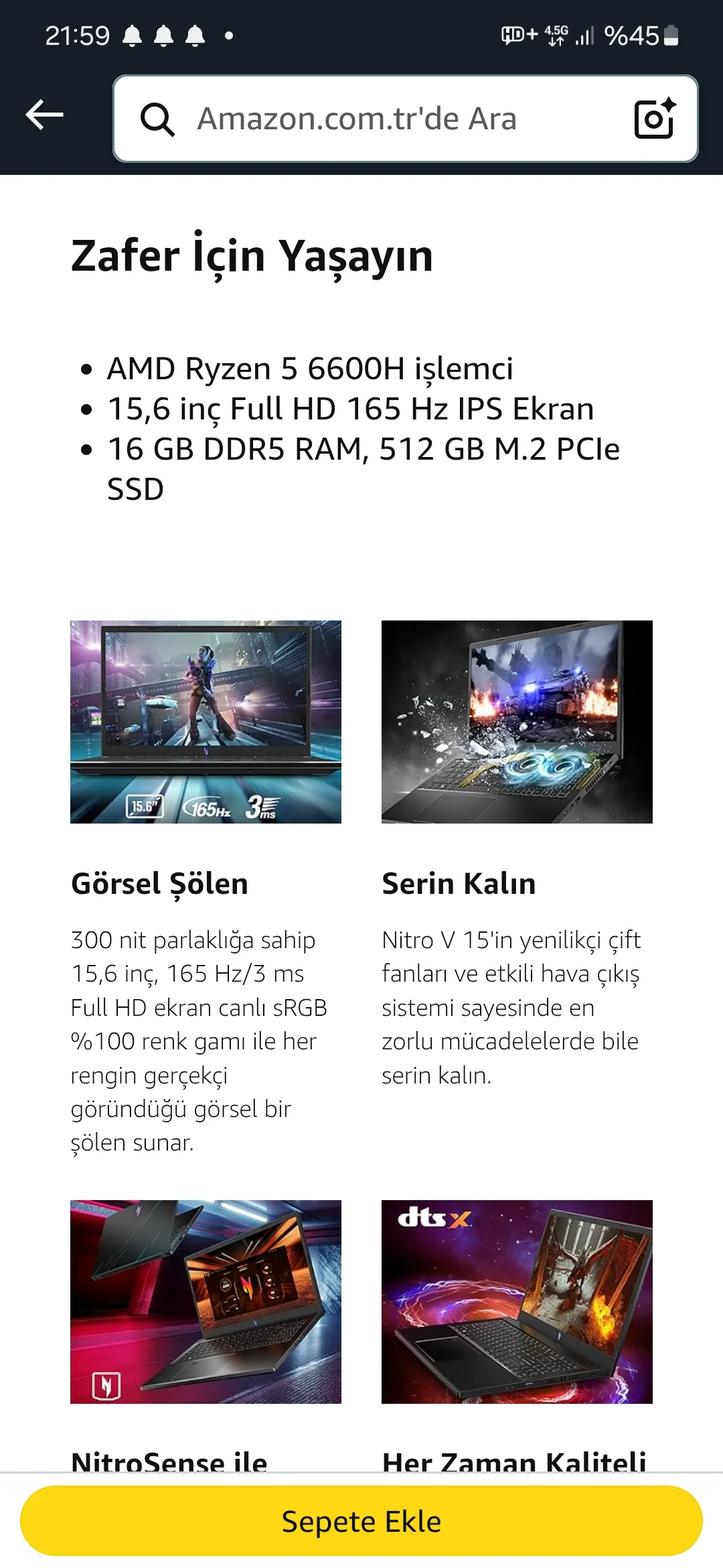 🔥İndirim ACER RYZEN 5-6600H RTX3050 LAPTOP 24.999₺