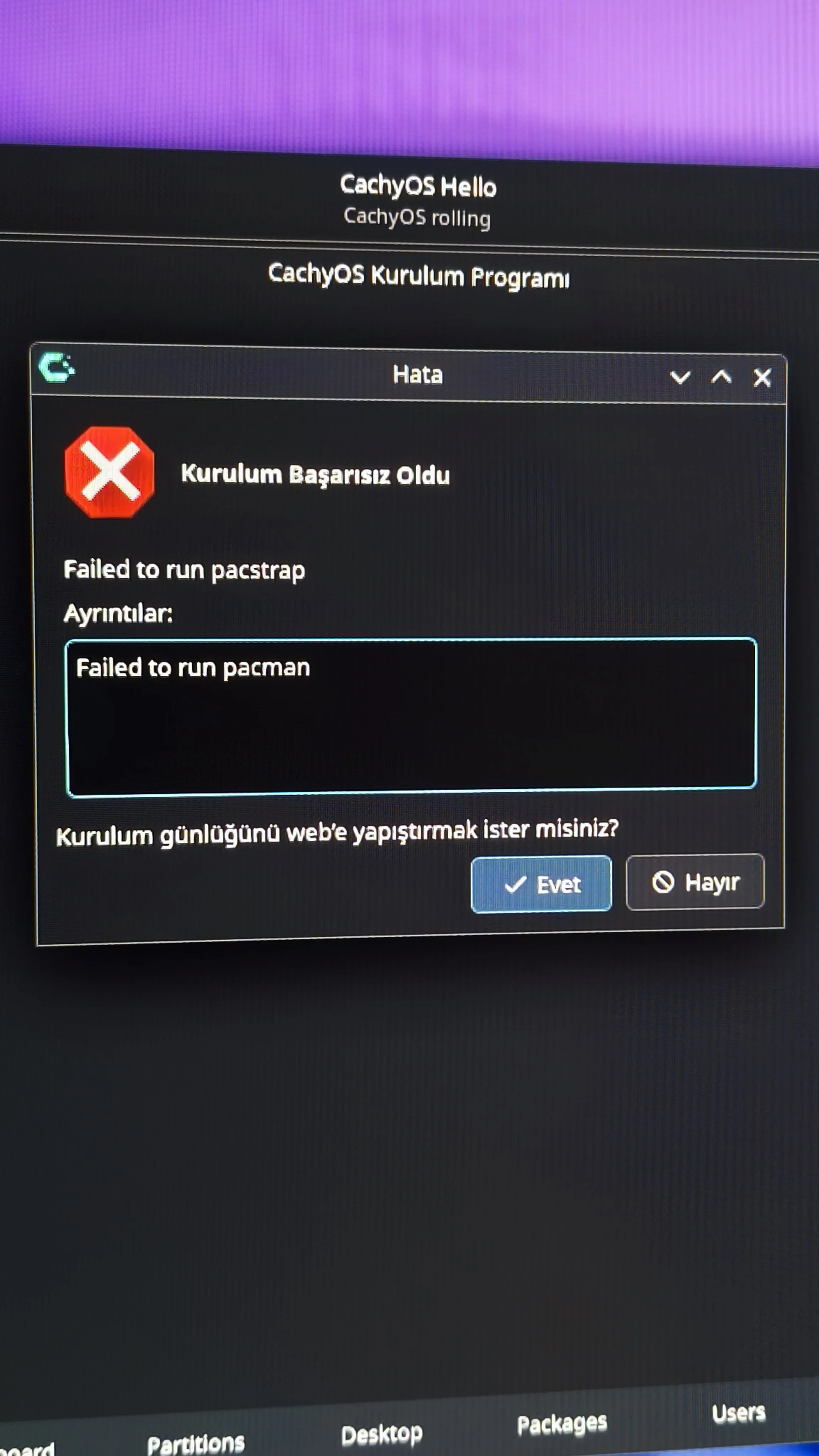 Yusufcuq 80+ Katılım 24 Şubat 2024 Mesajlar 144 Reaksiyon skoru 31 Dün, 20:14 #1 CachyOs kurmaya çalışırken pacman hatası alıyorum bunu nasıl çözebilirim Ekler IMG_20251110_215823 (1).webp 264.8 KB · Hit: 16