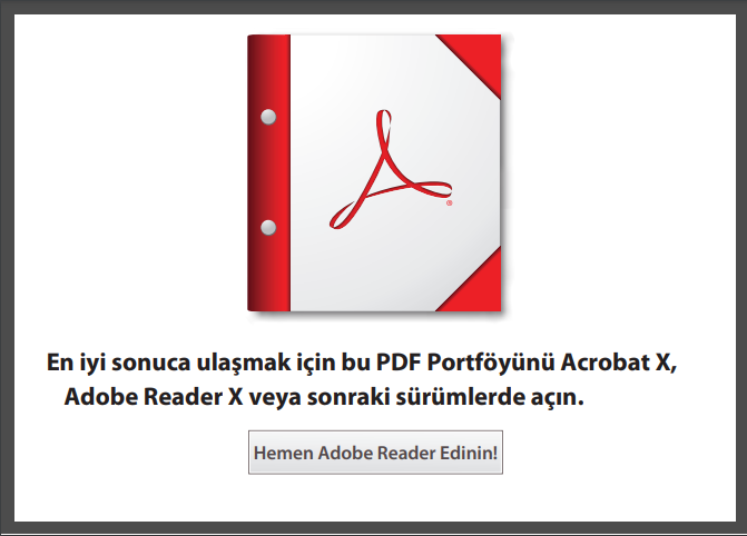 "En iyi sonuca ulaşmak için bu PDF Portföyünü Acrobat X, Adobe Reader X veya sonraki sürümlerde açın."