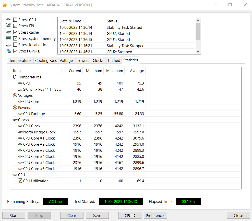 Arkadaşlar dün elime ulaşan bilgisayara AIDA64 stres testi yaptım.Fakat sonuçları hakkında bilen kişiler yorum yapabilir mi acaba ? Bilgisayar : Hp Victus 17-e0073nt