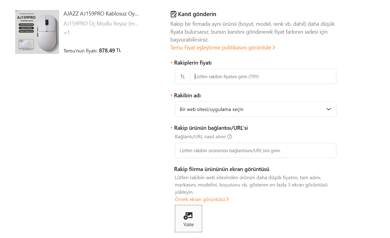 Siz daha önce o mouse'ta fiyat eşitleme talebi oluşturmuş muydunuz bu iadeyi almadan önce?
