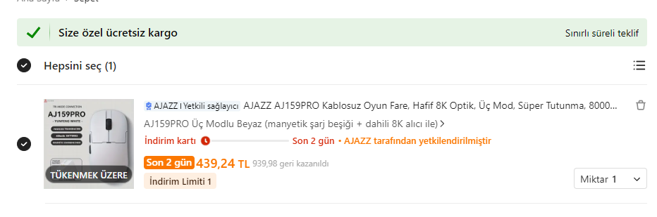 bende 800 tl gözüküyor zaten darlıyorumda vermiyor kupon telefondanda bakıyorum ekstra indirim vermiyor bi kod felanmı yazmak gerekKanka bana ilk ürünü seçtiğim de 900₺ küsür düşürdü cadılar bayramından dolayı sonra sana özel indrim yeri var mesajlar kısmında onu da ekledi 614₺ düştü, son olarak da destekden %20 ekledim 491 tl geldi.