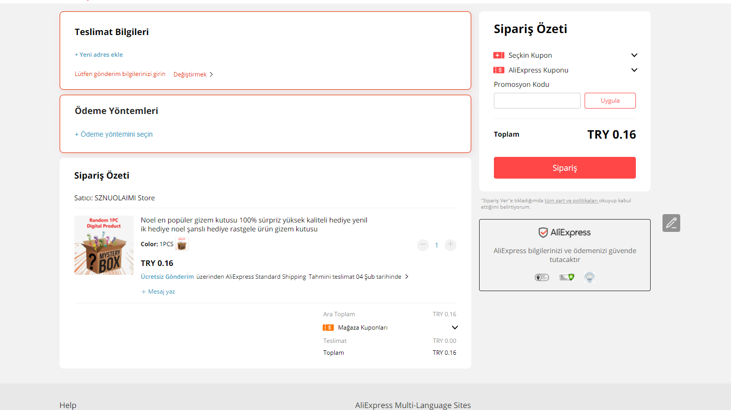Ali Express 0.1 Dolar Hediye etti ?