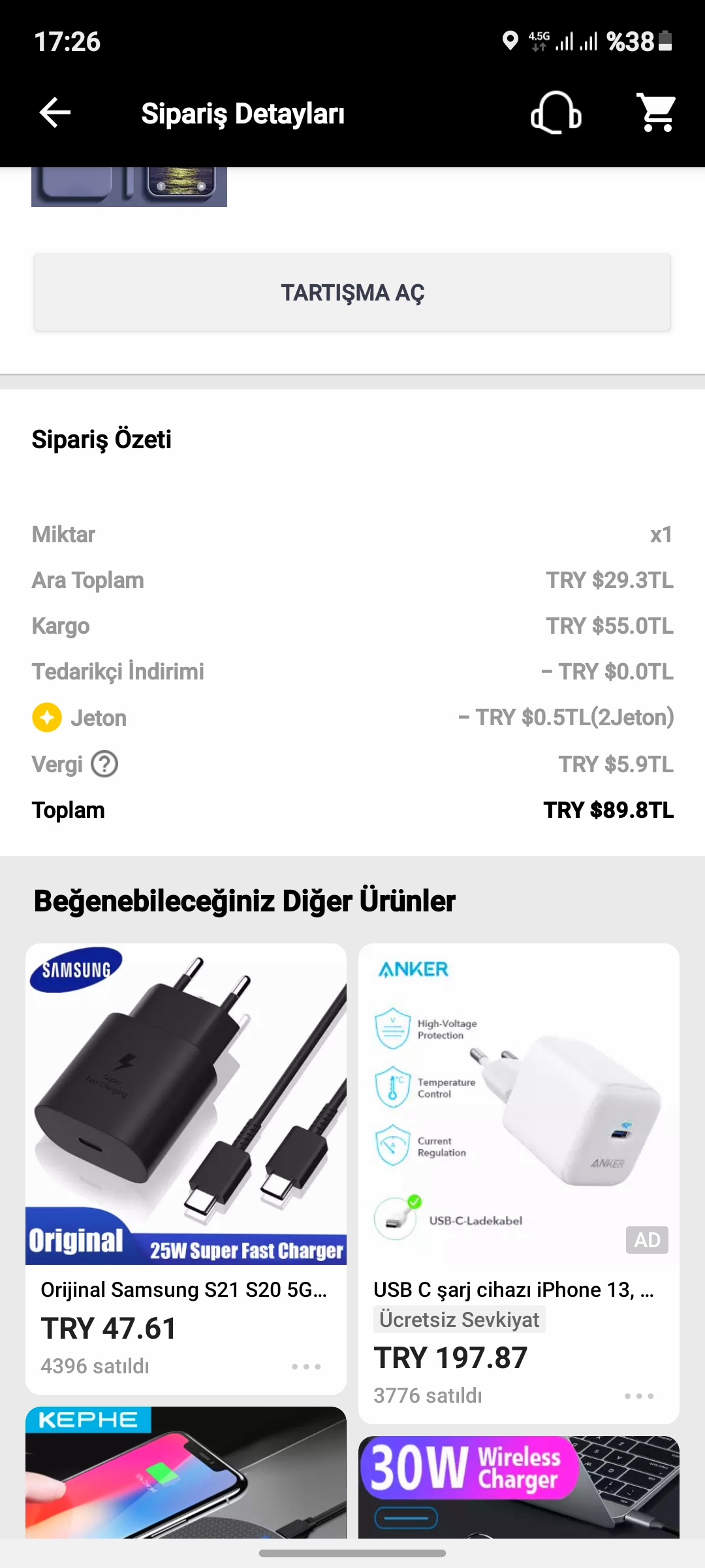 Pazar günü verdiğim siparişin SSini iletiyorum.