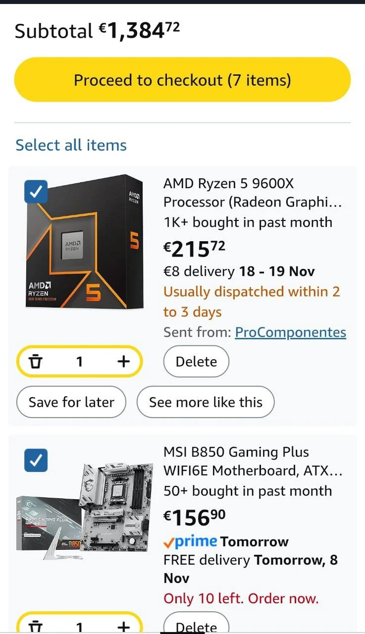 Almanya piyasasına çok hâkim değilim, bu yüzden tüm parçaları Amazon üzerinden ekleyerek bir sistem topladım. Fiyat, Türkiye’ye kıyasla biraz daha yüksek oldu.