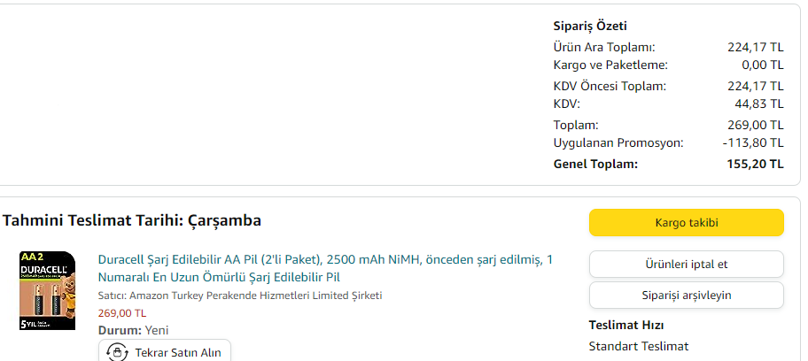 270 TL'lik 2500mah pil 155 TL'ye geldi eyvallah