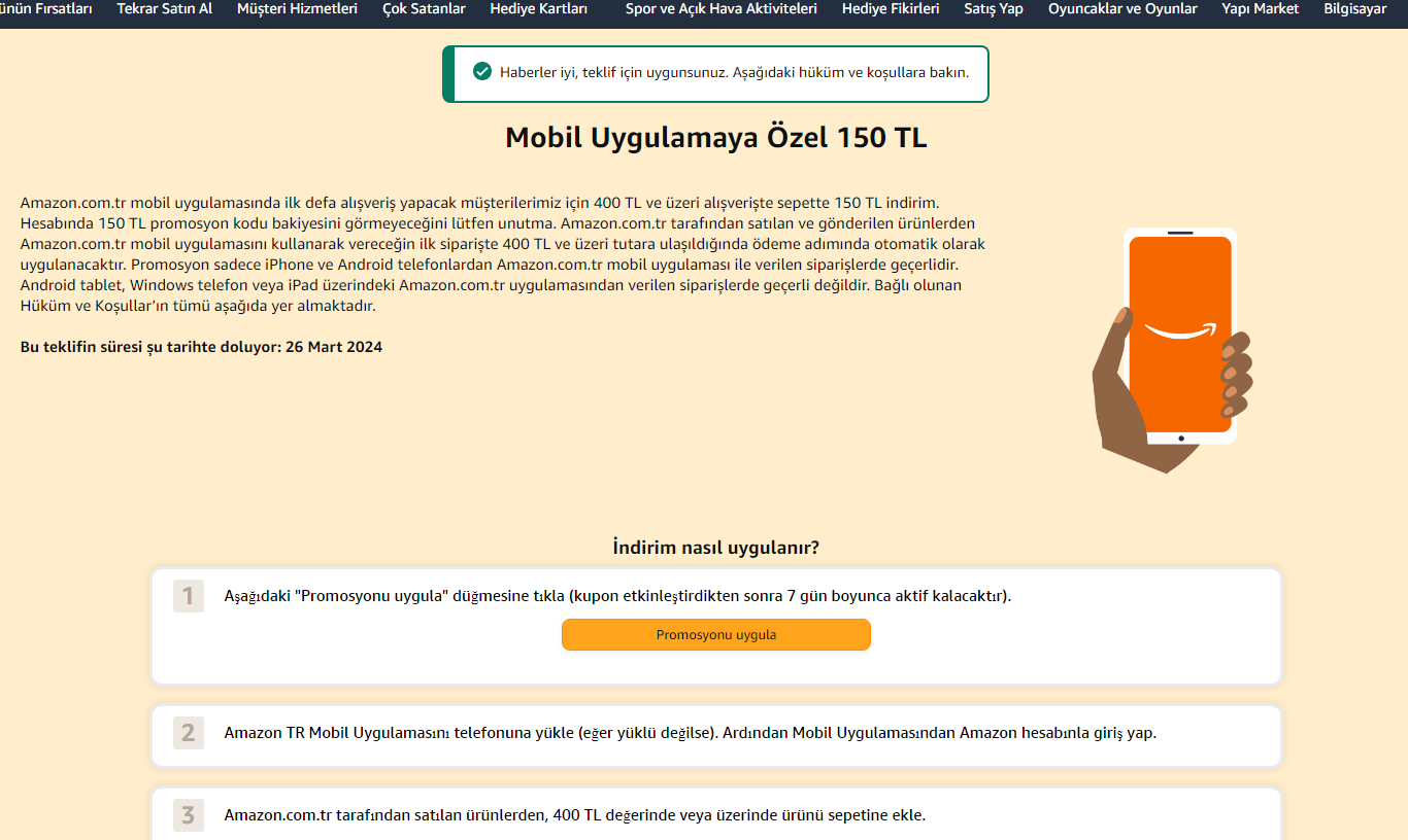 Koşullarda mobil uygulamadan yapılan ilk alışverişte yazıyor