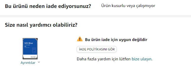 Amazon'dan iade etmeye çalıştığımda iade edemedim.