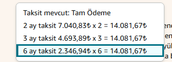 Bende her kartta maximum 6 taksit çıkıyor fakat amazonda