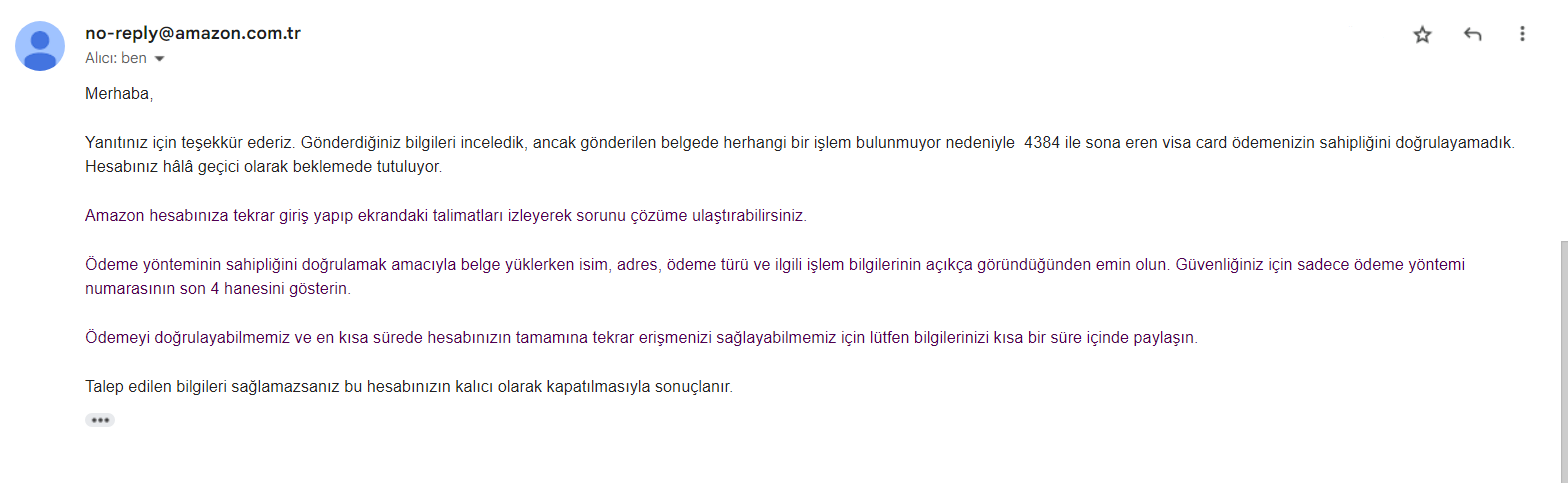 Birkaç gün önce Xaomi Redmi Note 10 Pro siparişi vermek için hesabıma girdiğimde daha önce eklemiş olduğum bir kartla sipariş vermeyi denedim ama bu kart hata verdi. Bu kartı yanlış eklediğimi fark ettim ve daha sonradan eklediğim kartımla siparişi verdim. Siparişten birkaç saat sonra hesabın kilitlendi tarzı mail aldım. Benden hesaba hata sonucu yanlış eklediğim kartla doğrulamamı istiyor. Yahu kardeşim ben o karta sahip değilim ki yanlış yazmışım zaten nasıl doğrulayayım? Müşteri hizmetlerine her seferinde bağlanmaya çalışmama rağmen beni hesap uzmanlarına yönlendirip durdular mail gelecek dediler ama ne mail aldım ne de başka yardım görebildim. Sözüm ona 7.891 lira paramı ne iade ediyorlar ne de hesabımı açıyorlar. Asıl şoku müşteri hizmetleri "Elif" adında bir temsilcinin verdiği tepkide yaşadım. Hesabınız kapandıysa, hesap uzmanlarından olumsuz cevap alırsanız, hesabınız kapalı olduğu için size parayı iade edemeyiz tarzında bir şey söyledi! Koskoca global firma Amazon, hata sonucu oluşan bu sorunun çözümü olarak müşterilerinin parasının üstüne yatmakta mı buluyor??? Arkadaşlar şu an çok mağdur durumdayım paranın şu denli zor kazanıldığı dönemde böyle sorunlarla karşılaşıyor olmak büyük sorun. Benzer problemle karşılaşan arkadaşlar veya konu hakkında bilgisi, tecrübesi, birikimi olanları konunun altına davet ediyorum...