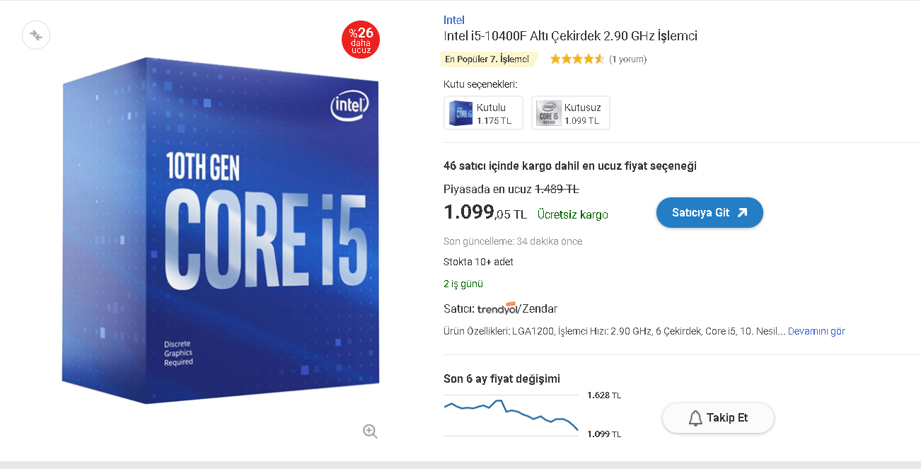 Intel bir şeyler deniyor sanırsam. 3600 rakibi olan 10400F, 10100F rakibi olan 3100'ün fiyatından daha düşük fiyatta.