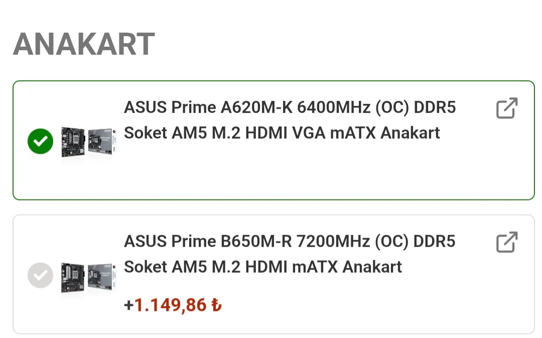 Oyun amaçlı hazır sistem alacağım. R5 7500F işlemci 5060 Ti 16 GB ekran kartı kullanacağım anakart seçiminde 2 seçenek arasında kaldım. 1150 TL fark ile B650M-R almayı tavsiye eder misiniz yoksa stoktaki anakart yeterli olur mu aralarında büyük bir fark var mı performansı etkiler mi?