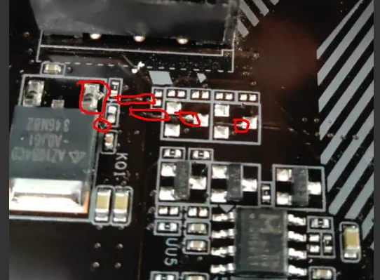 Sabahleyin bilgisayarı temizliyordum ekran kartını cikartmaya çalışırken sarı olan pini çıkmıyordu bende tornavida yardımı aldım ve tornavida anakartı çizdi ve tekrar çalıştırınca bilgisayar çalışmıyordu yuvarlak içine aldığım yerlerde sorum varmı sizce sağ tarafa full halini attım sizce sorun varmı yeni anakartamı geçeyim (model = gigabute a520m S2H)