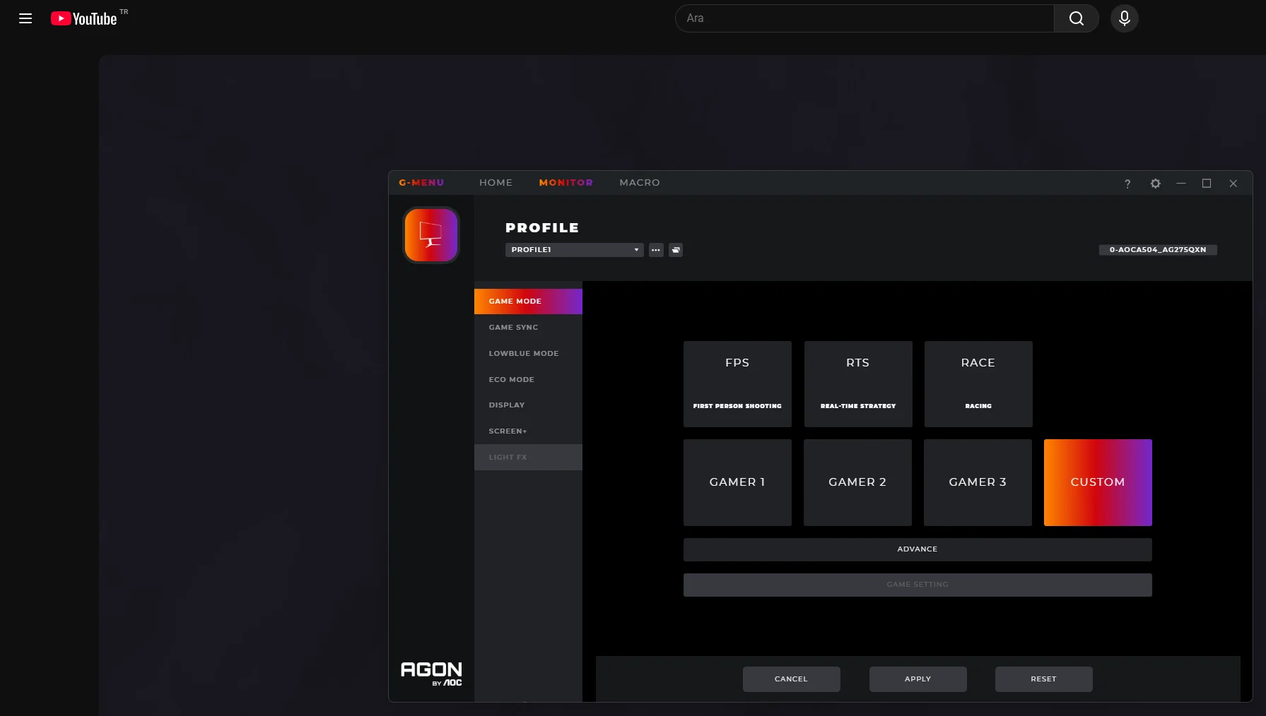 AOC g menü programı yükleMonitör aoc un uygulaması var o uygulama üzerinden yapıcan