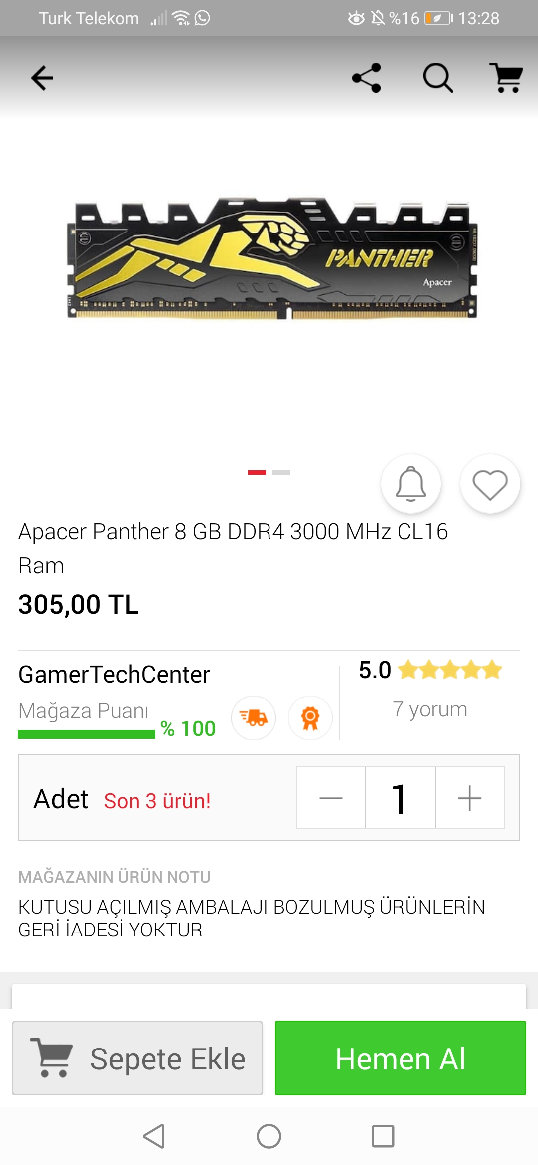 En ucuz Patriot Viper Steel 8 GB 3200 MHz DDR4 CL16 PVS48G320C6 Ram fiyatları için 6 taksit ve indirimleri kaçırma! Patriot Viper Steel 8 GB 3200 MHz DDR4 CL16 PVS48G320C6 Ram özelliklerini incele, 699,00 TL'den başlayan fırsatları yakala!