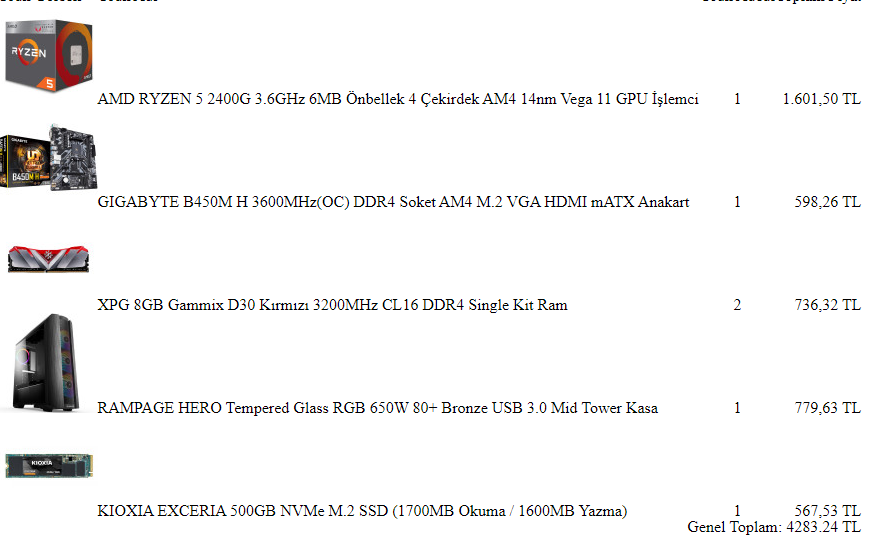 Selamlar, ben Utku. Aranıza yeni katıldım, bir bilgisayar ihtiyacım var, ufak tefek oyunlar oynayabileceğim, işlerimi yapabileceğim. APU sistem düşünüyorum, aklımda bi sistem toparladım. Buna bu kadar para verme bu fiyata daha iyisini alırsın, daha ucuza bulursun bunu diyen varsa yardımcı olabilir mi?