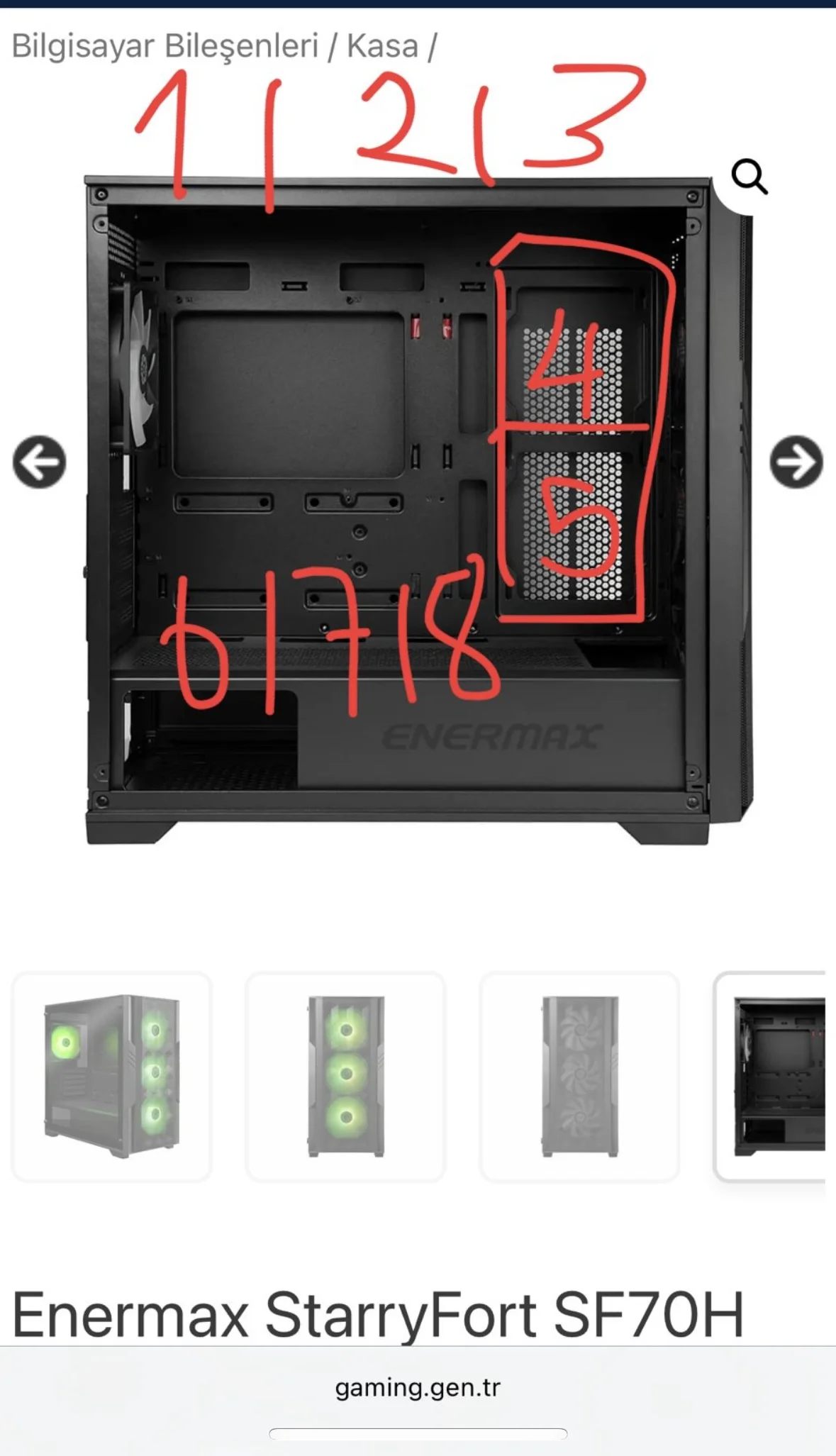 Hocam şöyle bir şey düşünüyorum ilk olarak kasanın önünde 3 arkasında 1 fan car onları kaldırmayacağım .6-7-8 olan yere fan koymak mantıklı mı ? Ayrıca hangi numaralara forward hangilerine backward almalıyım? Tek birini alıp ters de takabilirim ama etiket vb bir şey var mı görüntüyü bozar mı bilmiyorum o yüzden sormak istedim