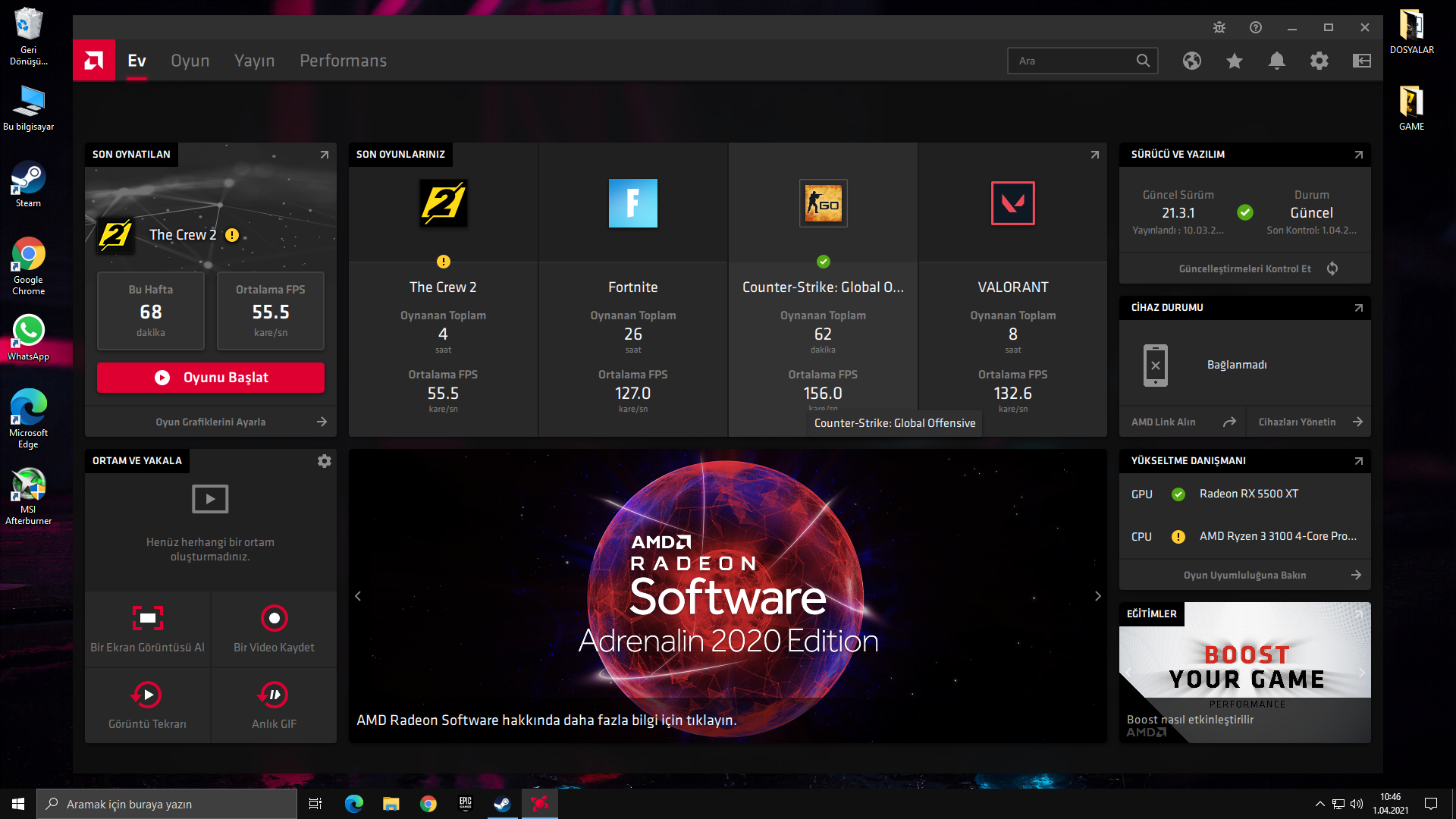 Sağolun hocam peki bir şey diyeceğim bende fazladan rx 5500 xt ekran kartı var acaba onu takı deniyeyim mi çünkü fortnite de oyunda 100-130 civarı fps alıyorum bence bu normal değil acaba kartta sıkıntı mı var?