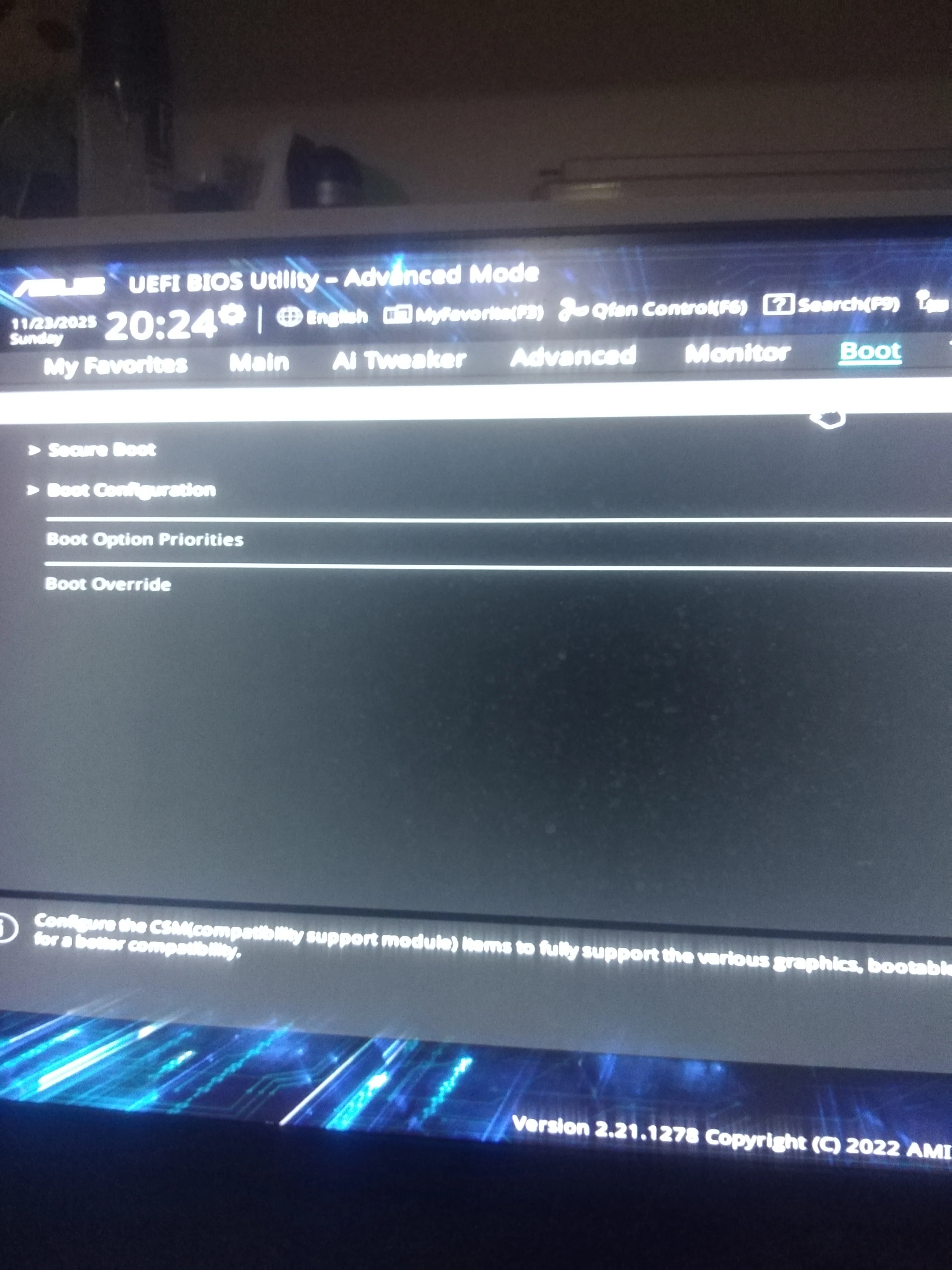 f1 ile biosa gir boot menuyu bul f8 ile olabilir windowsun yüklü olduğu ssd yada hdd yi seç enter bas tekrardan açılması lazım