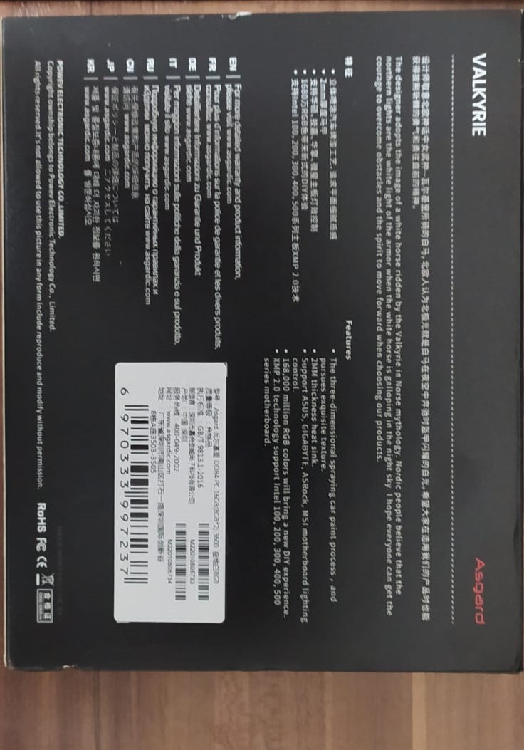 Ürün Adı: Asgard Valkyrie V5 DDR4 3600 (8x2) Bellek