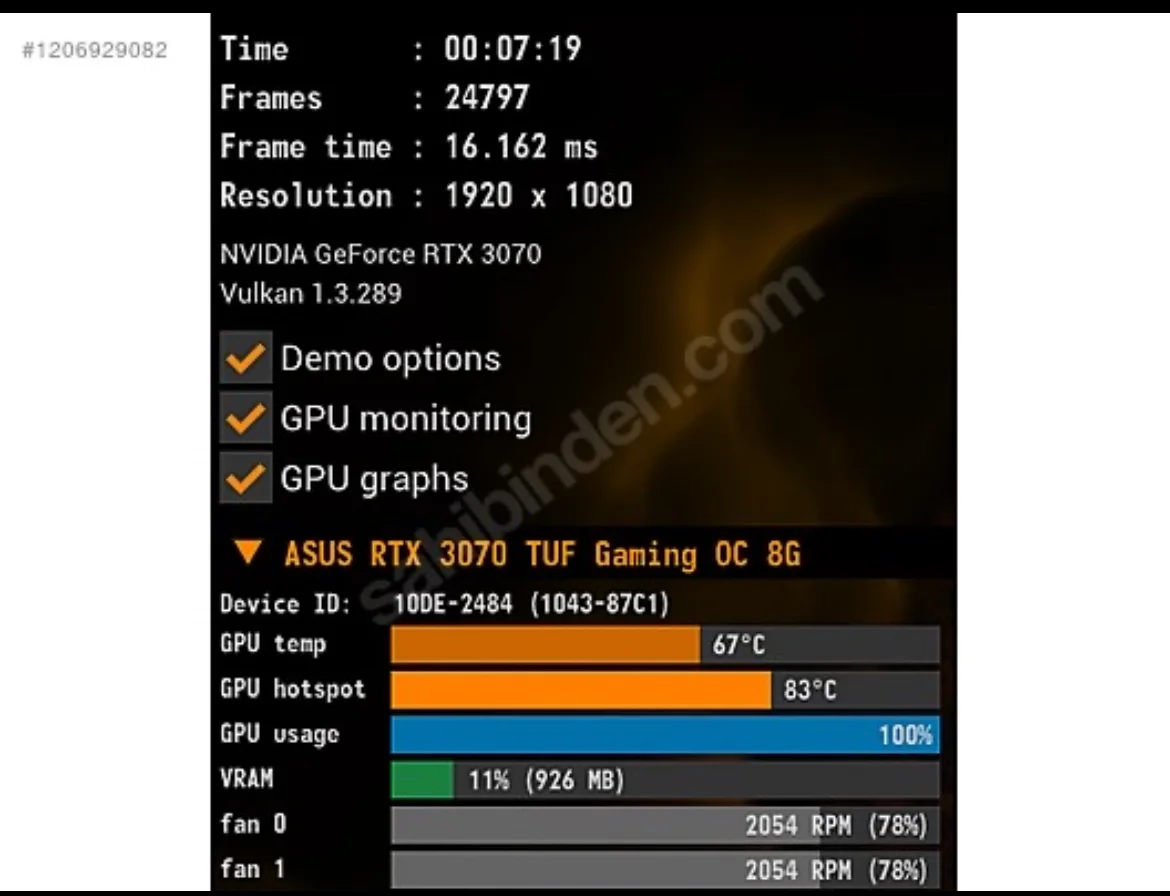 freygasm yazmış: 1920/1080p 0x ise test çok iyi değerler temiz kart. Evet öyleymiş diğer görseli görmedim. Değerler çok iyi. Devamı için tıklayın... Fiyatı iyi mi??