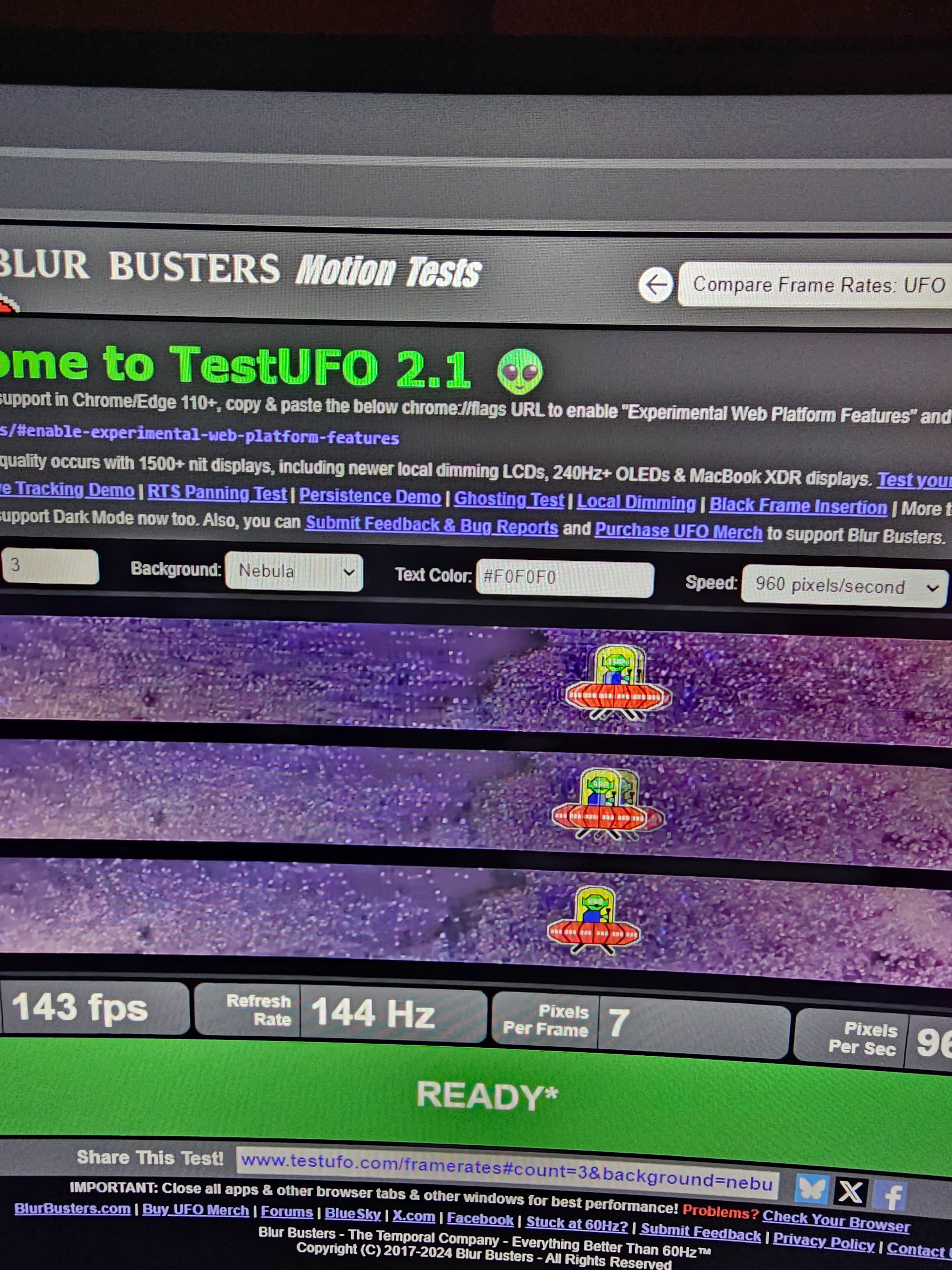 TestUFO: Ghosting / Pursuit Camera / Pixel Response Test