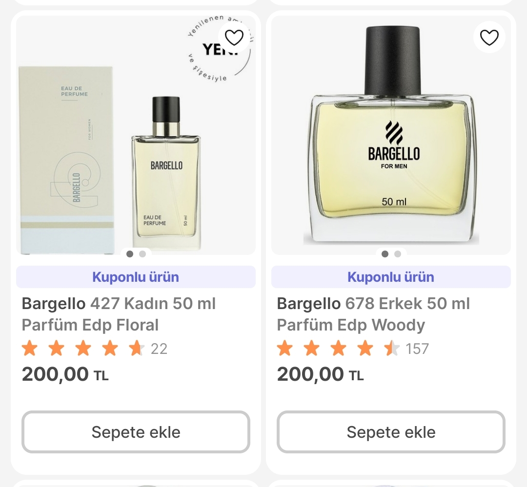 Diğer parfümler premium ile 289₺ bu iki parfüm tüm bargelloda 200₺'ye düştü.