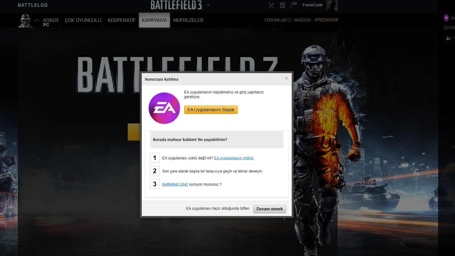 EA da battlefield 3 indirdim tıklıyorum battlelog sayfası açılıyor oyunu başlata tıklıyorum ve böyle bir sorunla karşılaşıyorum ssebebi nedir ? uygulamayı silip tekrar yükledim olmaadı.