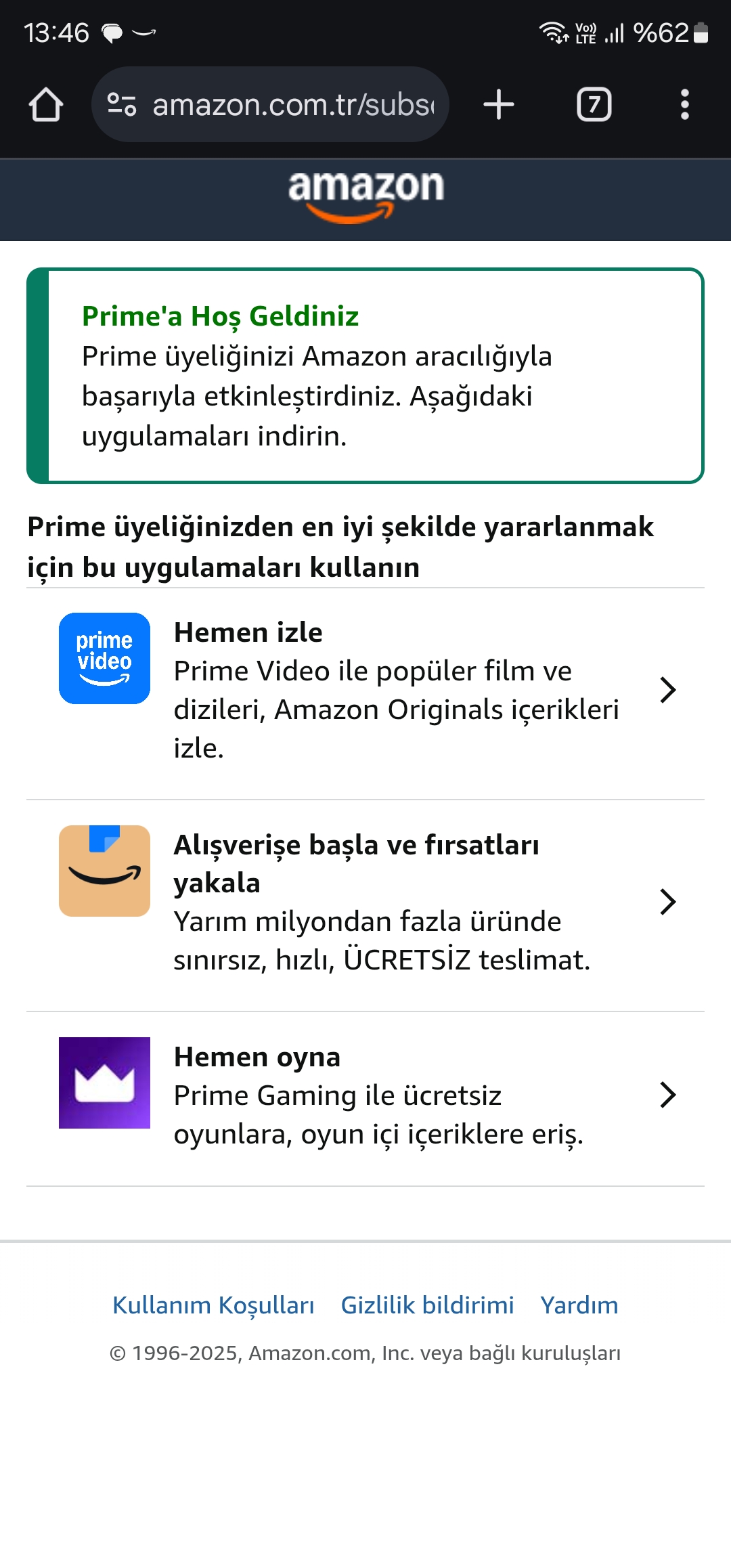samsung telefonlarda samsung member kurun anayasayfada 4 aylık Amazon prime bedava