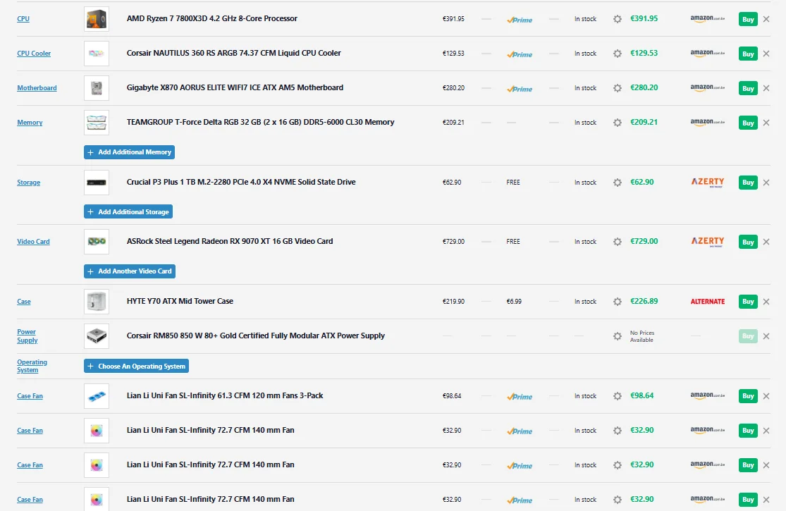 yani fiyatlar türkiyedeki gibi değil pek pcpartpicker sitesinden belçikayı seçip deneyebilirsiniz isterseniz bende isterim 5080 koyabilmek