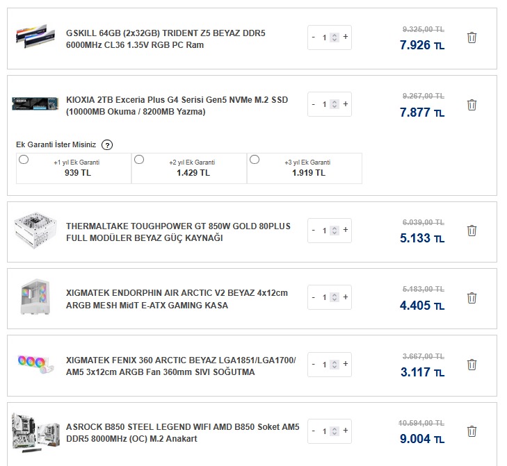 Arkadaşlar beyaz sistem toplayacağım ekran kartı ve işlemci hariç bir sistem yaptım eksikleri veya değiştirmemi önerdiğiniz bir şey var mı ?
