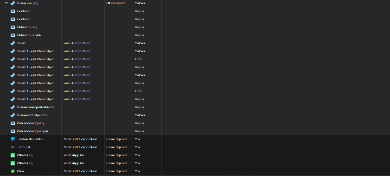 agsqdkbs baya şüpheli virüs olma ihtimali var steamdeki gldriverquery64 ve vulkandriverquery64 falan onlar virüs değil bazı oyunların çalışması için lazım fakat conhost'i bilmiyorum ama onun virüs olma ihtimali daha az ama genede bilemeyiz belki çıkabilir tavsiyem malwarebytes ile taratbaşlangıçta açılan uygulamalar arasında virüslü bir program varmı steam bana anormal geldi